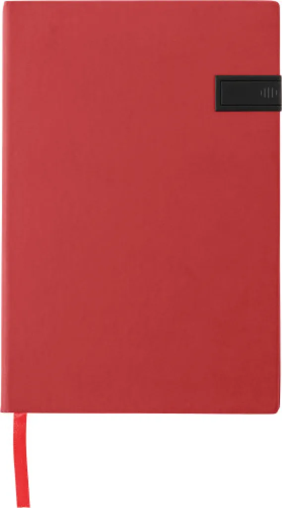PU notebook (approx. A5) with 16GB USB drive integrated in the cover, 96 lined pages and ribbon marker.