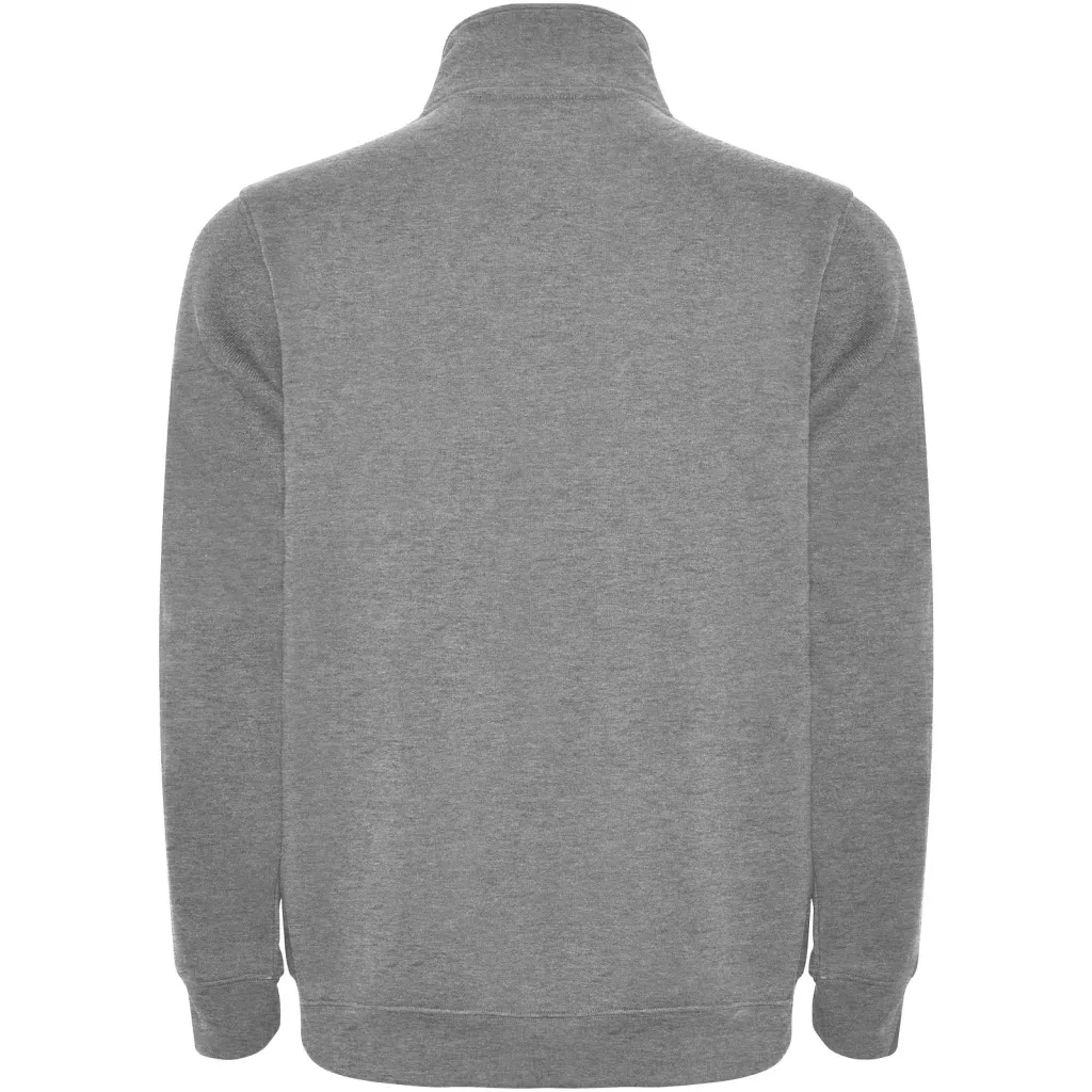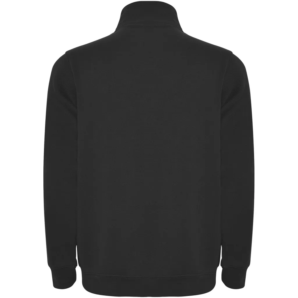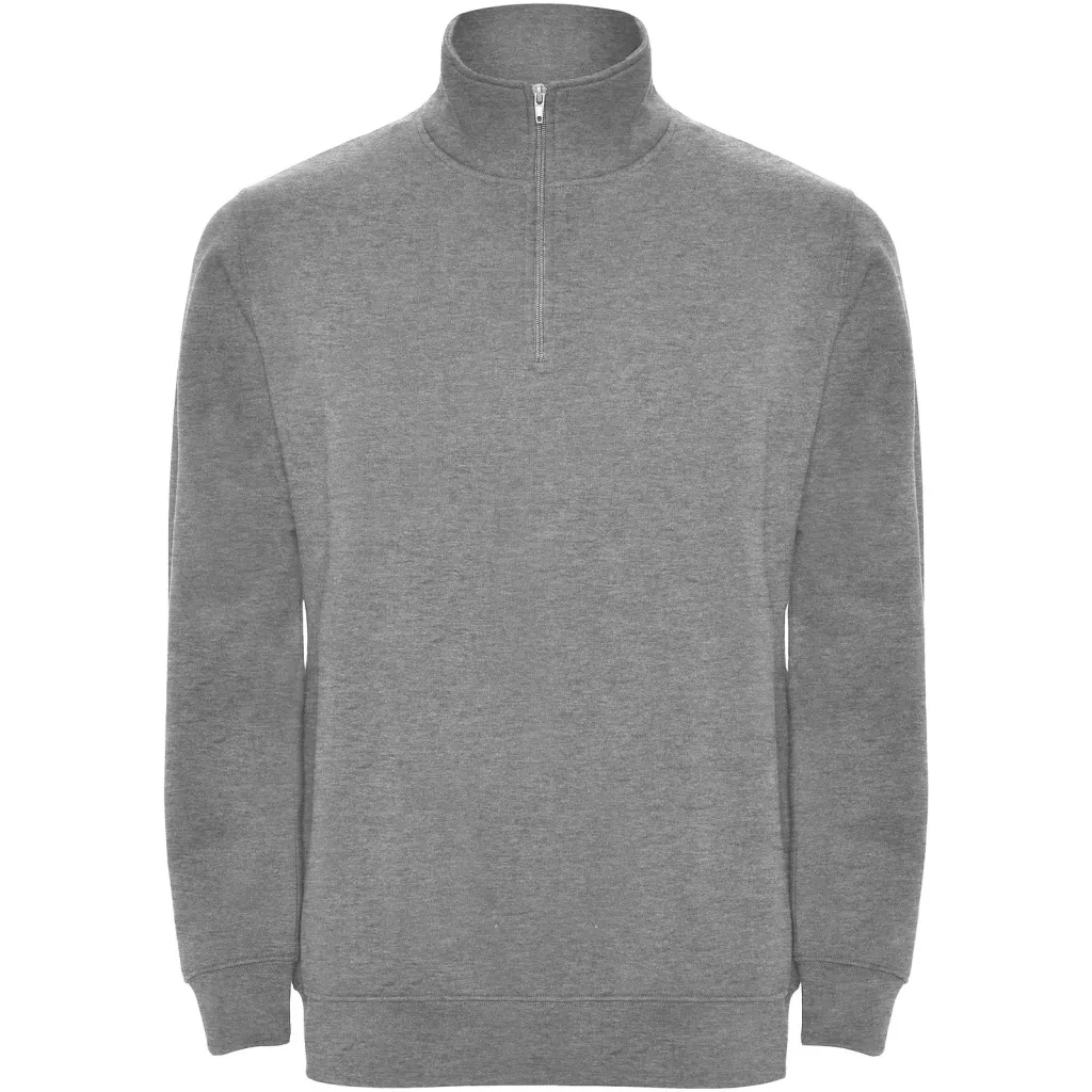 Sweatshirt with matching half zip and polo neck. Matching inner collar. Reinforced covered seams on inner collar. 1x1 ribbed cuffs and waist. The model is 185 cm and is wearing size M.