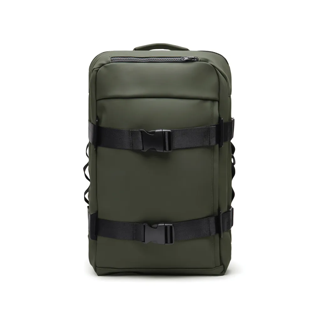 The ultimate companion for your adventures. Crafted with partly RCS certified recycled polyester. The exterior features a sleek PU finish, with mesh backing on the shoulder straps and back for maximum comfort. Designed for convenience, the bag can be fully opened for easy access. With multiple smart features, it offers a 15,6" laptop compartment, two exterior pockets and a roomy mesh section inside to keep your gear organised. A sturdy top handle and a carabiner to secure smaller items. The clever strap at the back allows easy attachment to a trolley bag. A side zipper offers convenient access to the main mesh compartment. This is the ideal backpack for both daily commutes and weekend adventures. Certified by RCS (Recycled Claim Standard), RCS certification guarantees that the entire supply chain of recycled materials is certified. The total recycled content is based on the overall product weight. This product contains 16% RCS certified recycled polyester.