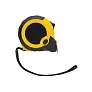 5 meter tape made with RCS (Recycled Claim Standard) certified recycled ABS. Total recycled content: 15% based on total item weight. RCS certification ensures a completely certified supply chain of the recycled materials. With deluxe TRP rubber grip for smooth grip. With release/lock button and extra hold button on the side. With 19mm single sided tape yellow with black carbon steel hook. With polyester wrist strap. Packed in FSC® mix kraft packaging