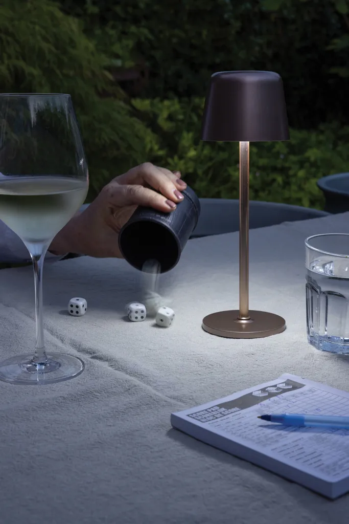 Trendy re-chargeable and portable table lamp that will look good both on your desk or in your living room. Made with RCS certified recycled ABS and metal pole. Total recycled content: 51% based on total item weight. RCS certification ensures a completely certified supply chain of the recycled materials. The table lamp will operate up 8 hours on one single charge and can be re-charged in 3 hours. With integrated 1200 mah A-grade battery, With three modes (warm light, white light and neutral) that can be adjusted by touching the top of the lamp. Rechargeable via USB-C including 80cm recycled TPE charging cable. Packed in FSC® mix packaging. PVC free.