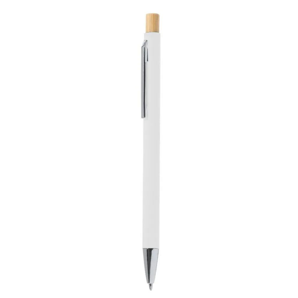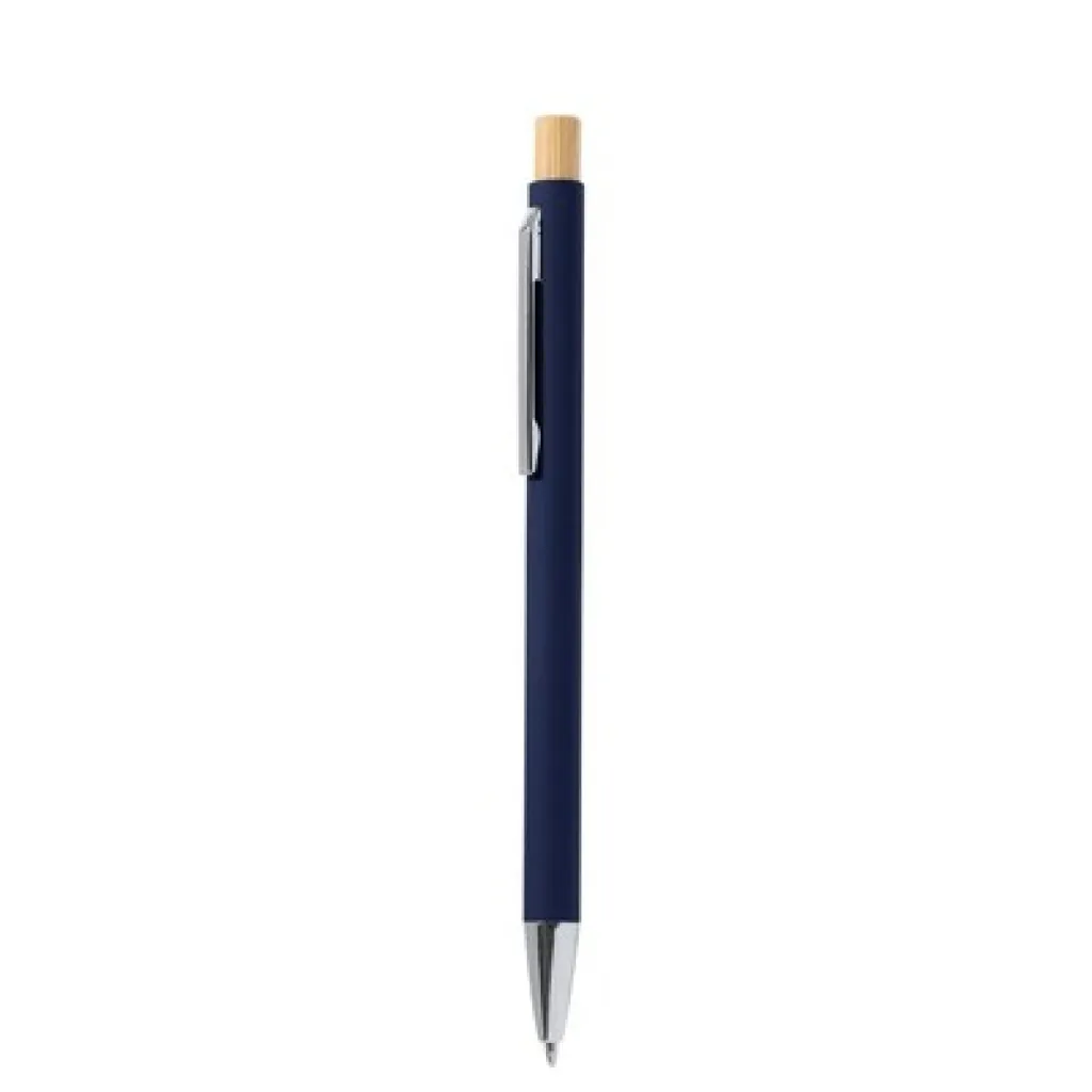 Ball pen, features bamboo button, writes in blue, product made of recycled aluminium and bamboo, compliant with GRS (Global Recycled Standard) certificate