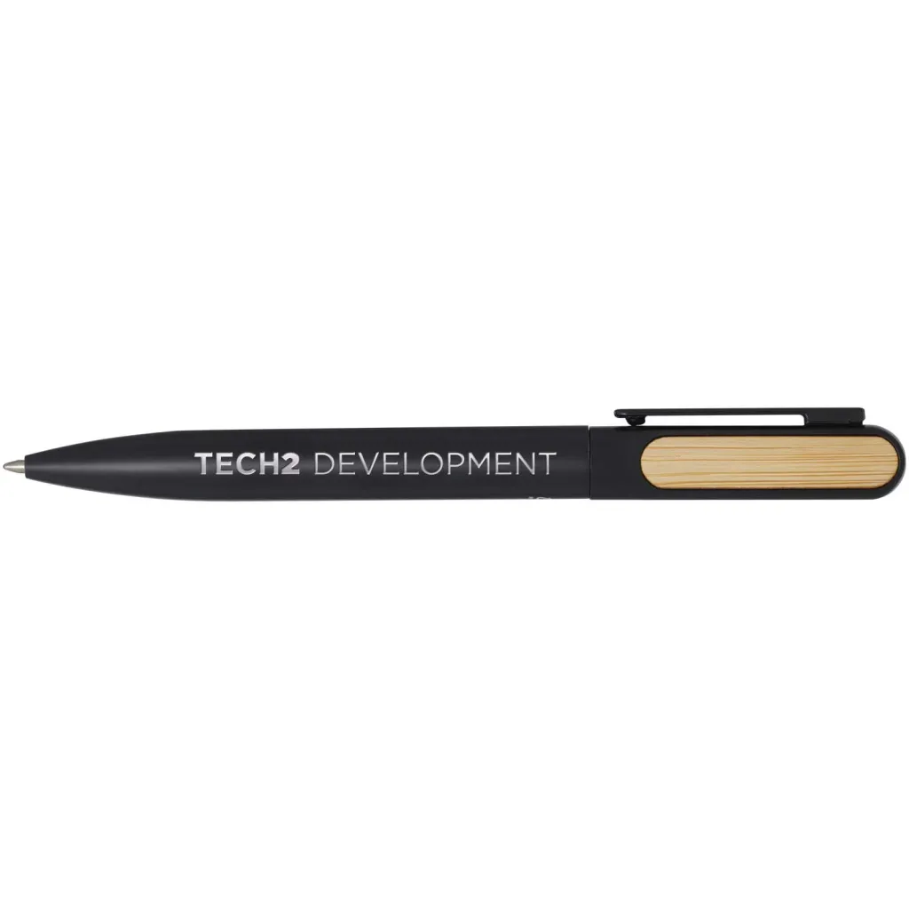 The Blanca ballpoint pen has an upper barrel made of recycled plastic with a coloured spray coating, and bamboo accessories on both sides. The lower part of the barrel is made of recycled aluminium with a coloured spray coating. Ink colour: Black. Writing length: 400 metres. Nib size: 1.0 mm.