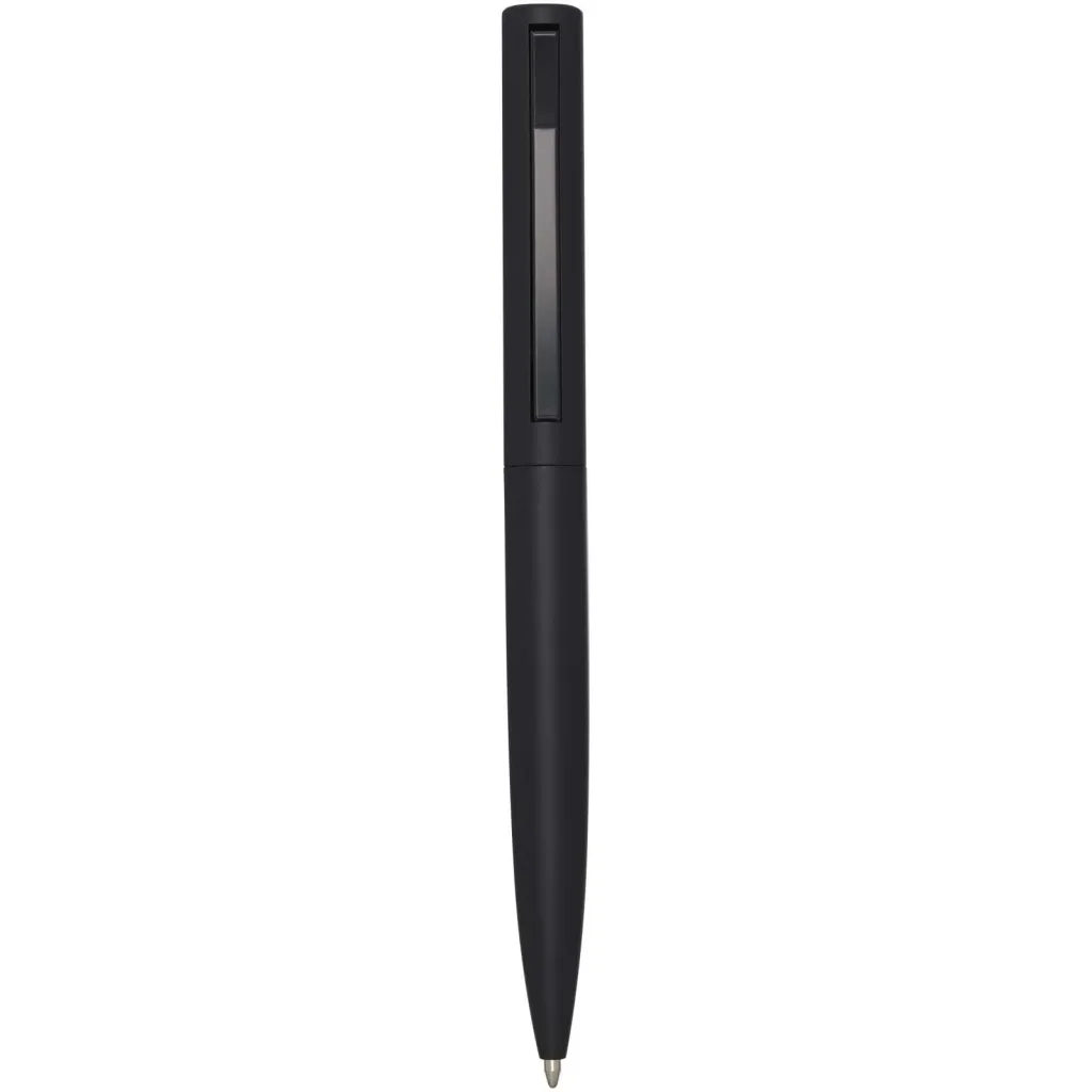 Ballpoint pen with the upper barrel made of recycled plastic, and the lower part is made of recycled aluminium. The clip is made of iron. Ink colour: Blue. Writing length: 1000 metres. Nib size: 1.0 mm.