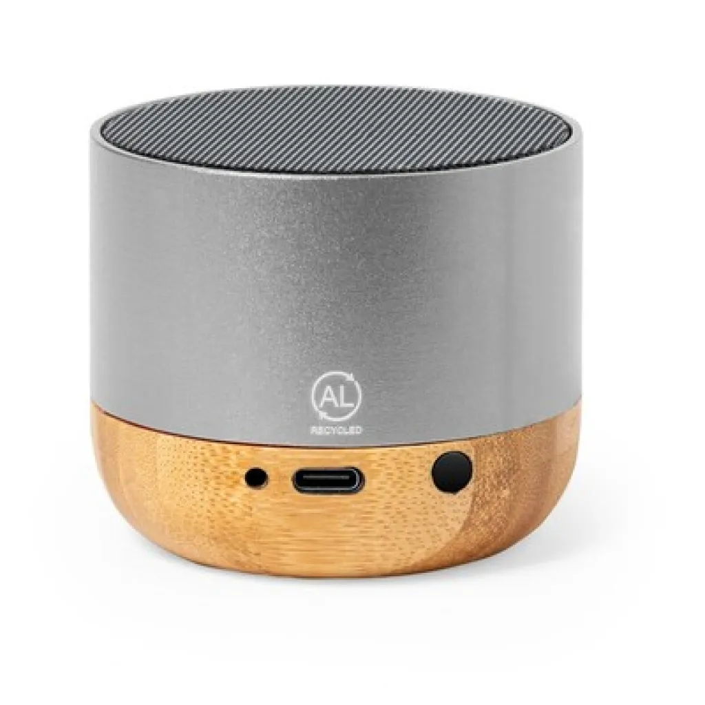 Wireless speaker 3W, BT 5.3, body made from recycled aluminium, bamboo details, 300 mAh battery, working distance up to 10 m, USB type C input, USB type C cable included