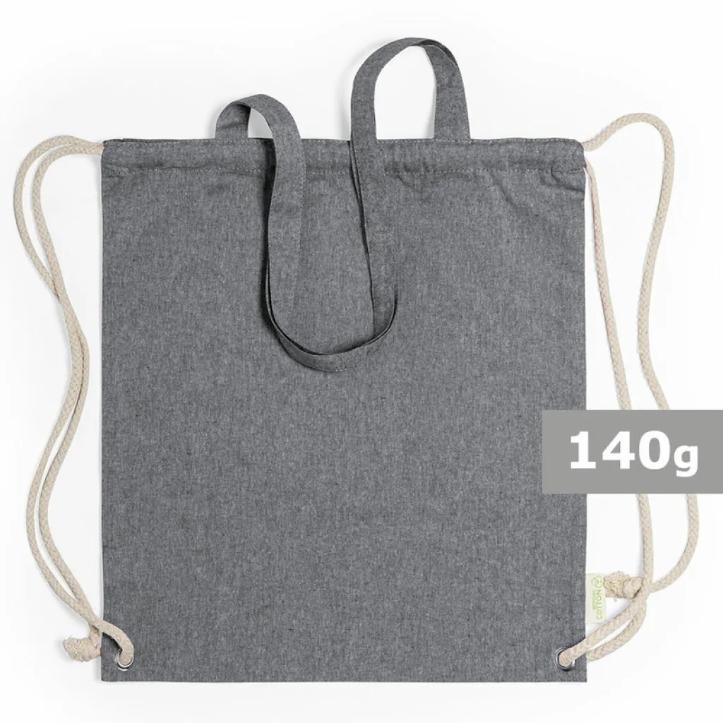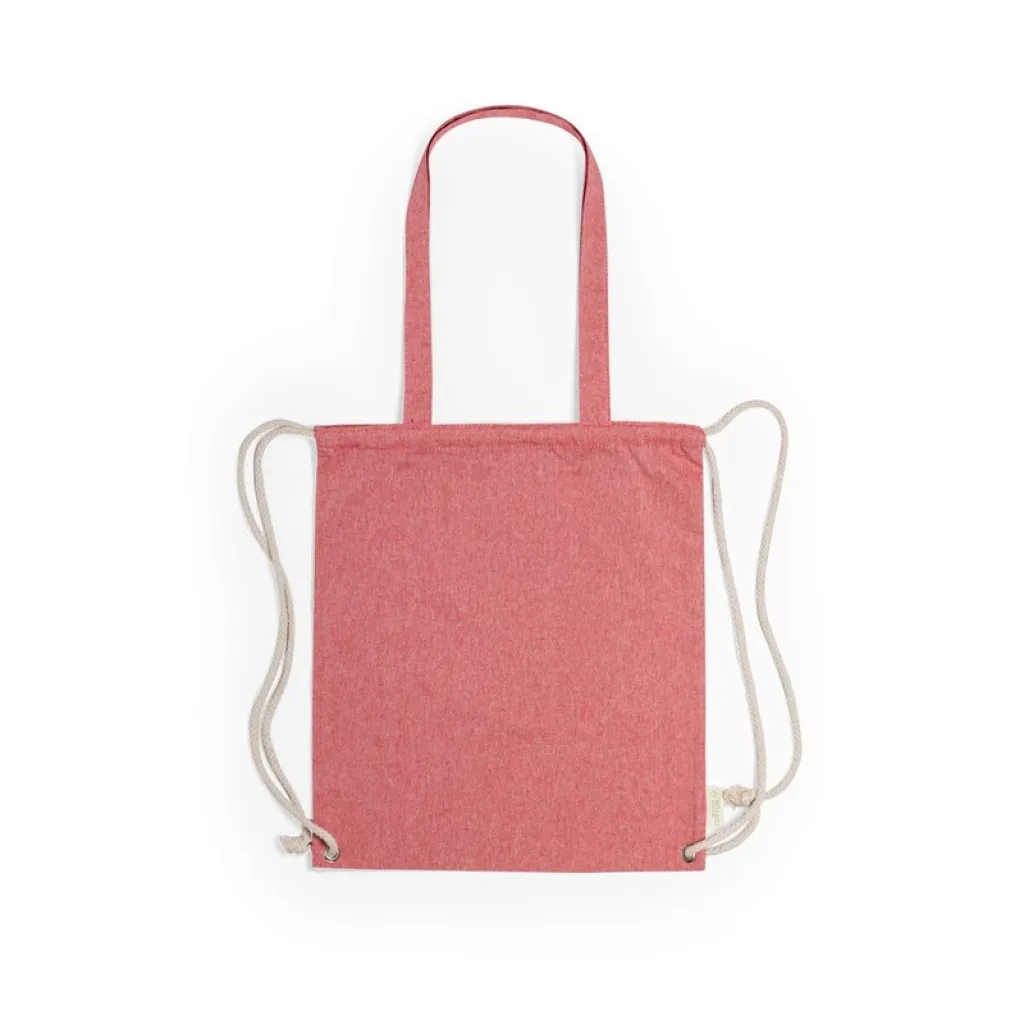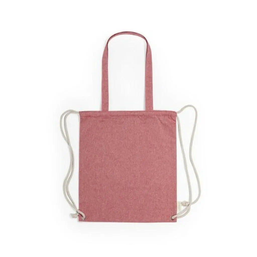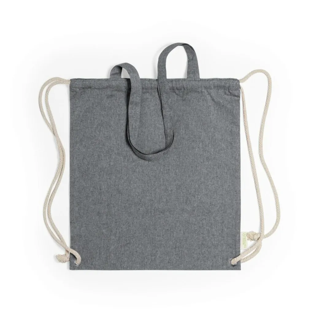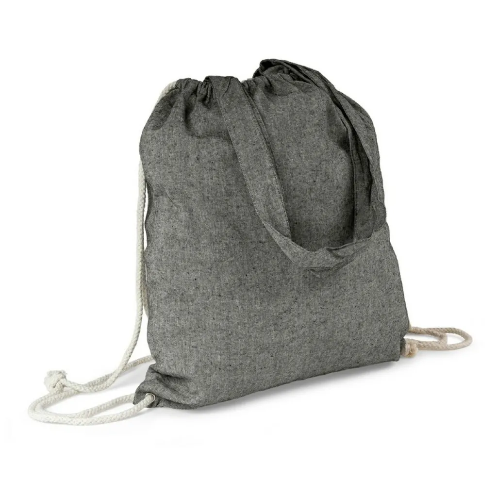 Recycled cotton bag 2 in 1, drawstring bag and shopping bag