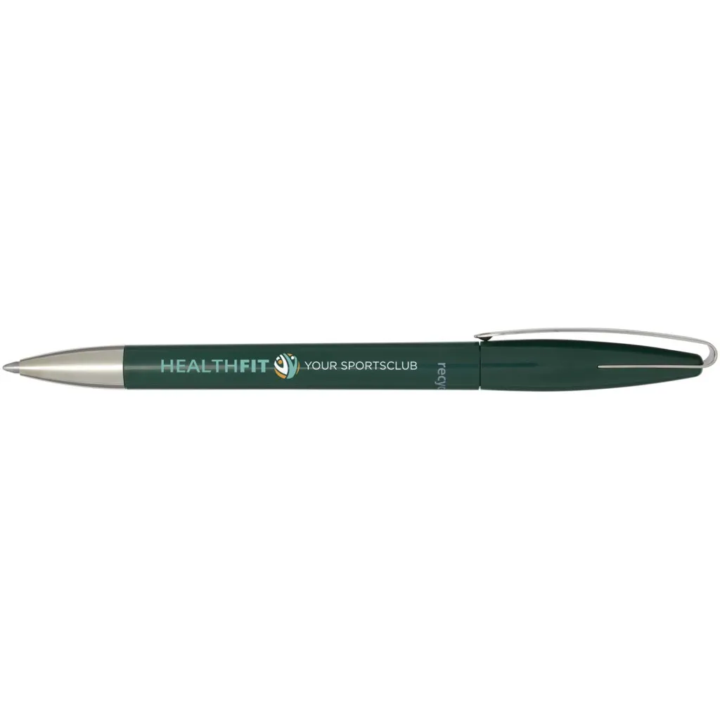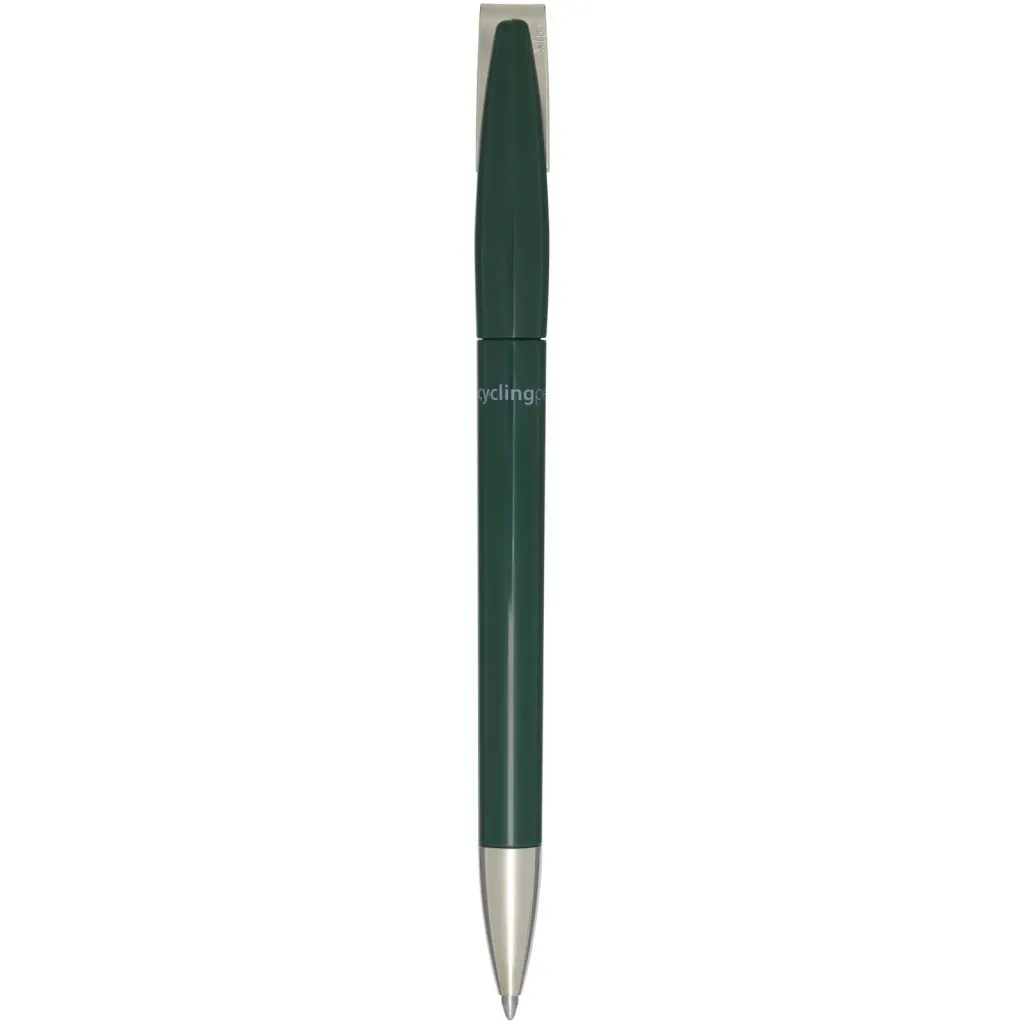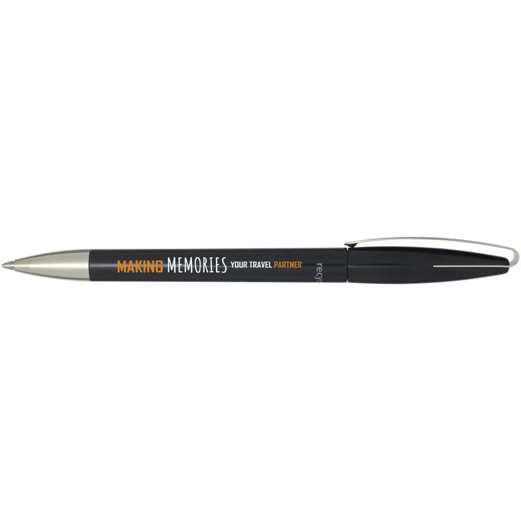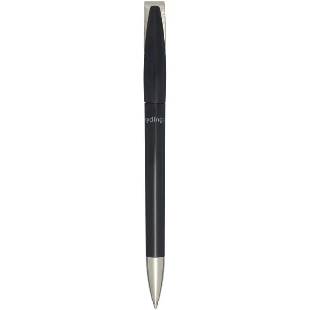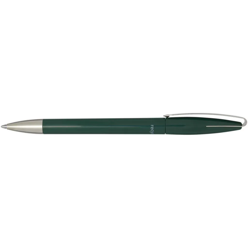 Ballpoint pen with barrel made of recycled plastic, and metal clip and tip. Ink colour: Blue. Writing length: 3000 metres. Nib size: 1.00 mm. Made in Germany.
