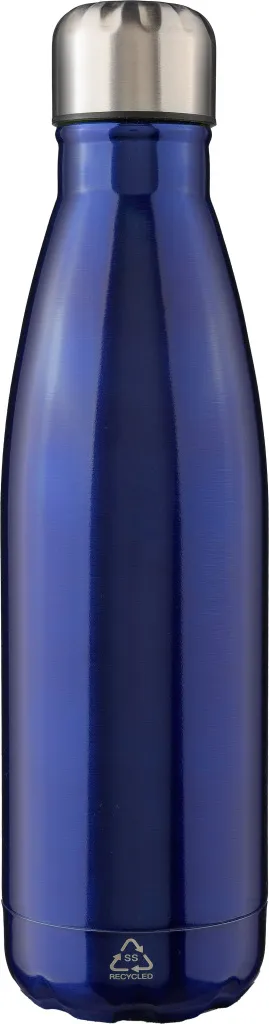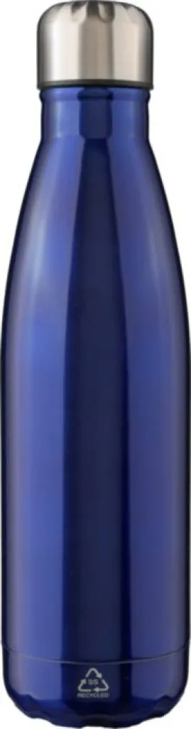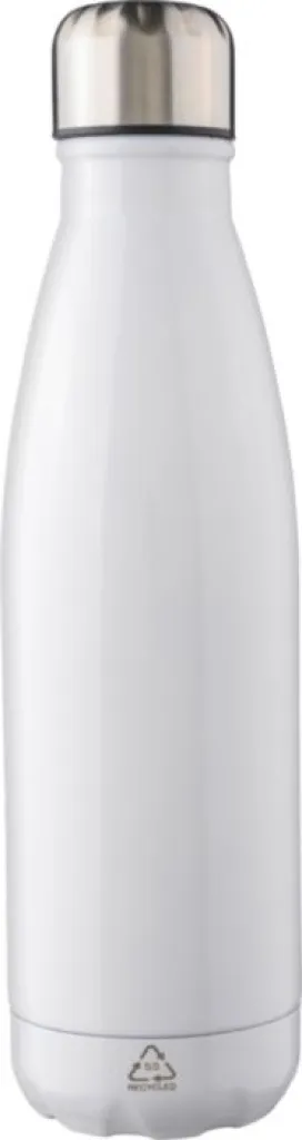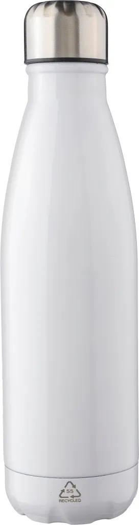 Recycled stainless steel single-walled flask (650 ml) with screw cap. Made from stainless steel 304. Recycled logo engraved on the flask. Individually packaged in a brown cardboard box.