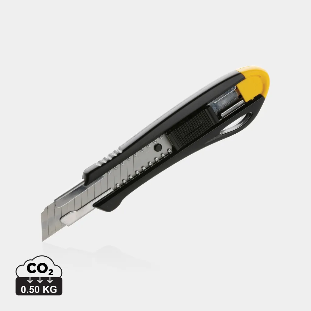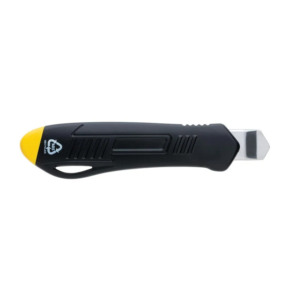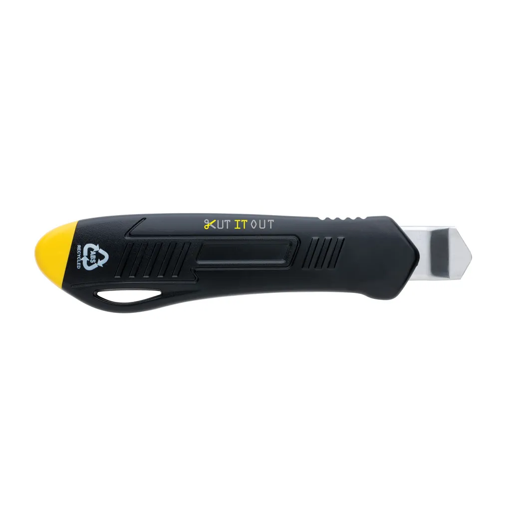 Refillable RCS certified recycled plastic snap-off knife made with RCS (Recycled Claim Standard) certified recycled ABS and stainless steel blade. Total recycled content: 36% based on total item weight. RCS certification ensures a completely certified supply chain of the recycled materials. This versatile knife features a snap-off blade design, allowing you to easily replace the SK4 blade when it becomes dull. Whether you need to cut through cardboard, plastic, or even thin sheets of metal, the snap-off knife is up to the task. The sharp, durable blade ensures that you'll get clean, precise cuts every time. The knife is also incredibly easy to use. The comfortable handle provides a secure grip, allowing you to maintain complete control as you cut. Plus, the lightweight design makes it easy to carry with you wherever you go. Packed in FSC® mix kraft package. The item comes with 1 blade inside the item and two extra.