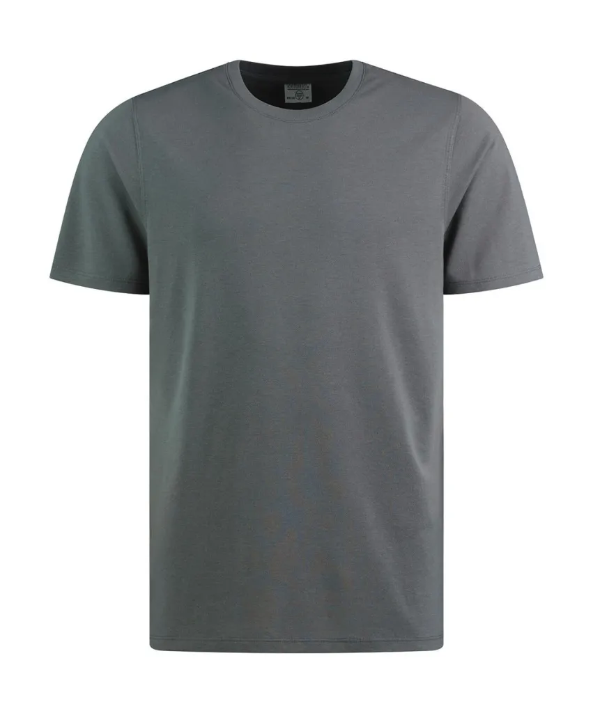 ·185 g/m² ·65% Polyester, 35% Cotton (Pique) ·1x1 ribbed crew neck ·Taped shoulder seams ·Twin needle hem, shoulders and cuffs ·Tear out label ·Washable up to 60°C.