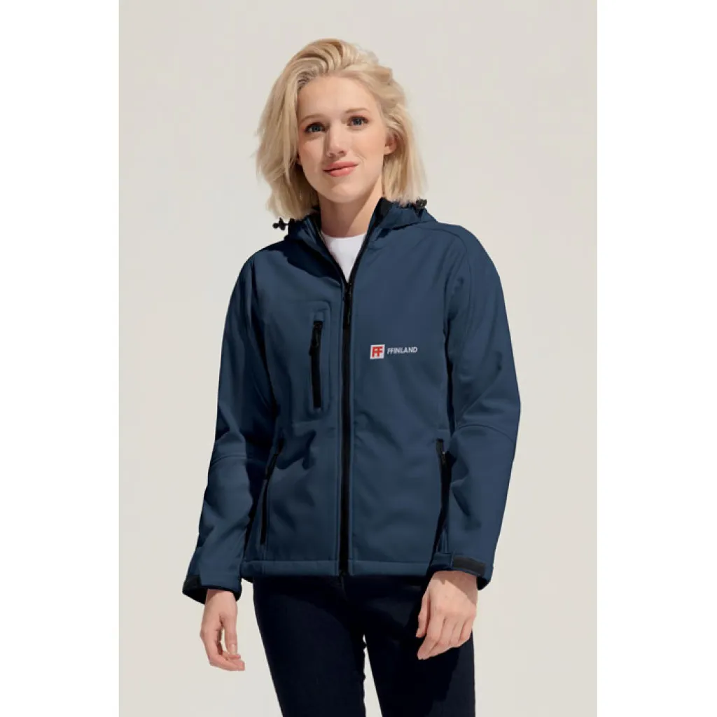 SOL'S REPLAY women softshell jacket 340g. 2 zipped side pockets and 1 zipped chest pocket. Adjustable waist drawstring. Adjustable cuffs with self-gripping fastener. Hood with drawstring. Fabric details: 94% polyester - 6% elastane. Fleece lining: 100% polyester. 3 layers. 8000 mm waterproof and breathable membrane. OEKO-TEX®. Only Sold with Print.