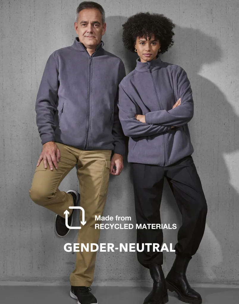 ·240 g/m² ·100% polyester (Recycled) anti-pilling Micro Polar Fleece (144 filaments) – RCS certified ·True gender-neutral style ·Supersoft, lightweight, thermally efficient micro polar fleece ·Thin filaments (144 denier) allow high density knit for maximum insulation ·Bound cuff and hem for wind protection ·Chin protector for extra warmth ·Quick drying ·2 front pockets with zips ·Convenient hanging hook for easy storage ·Tested and approved for decoration ·"B&C No Label” solution for easy Rebranding.