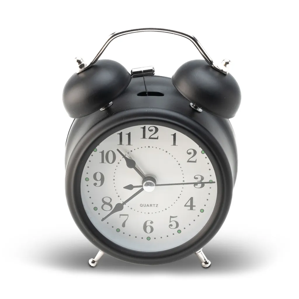 Classic clock with an alarm function. It has a very loud alarm sound and an illuminated clock face, which can be switched on with a button on the back of the clock. Battery included (AAA).