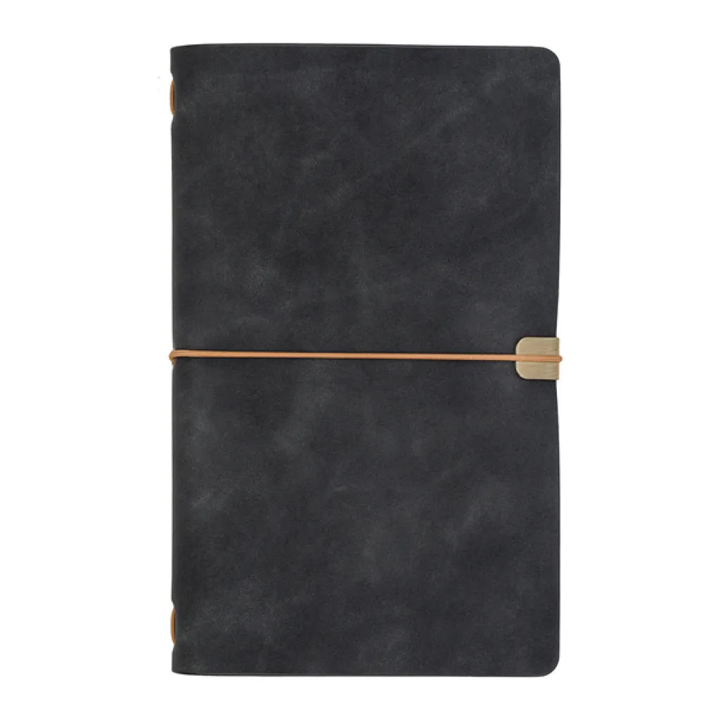 Retro-style notebook in a soft cover, closed with an elastic band. Includes 2 replaceable notebooks, 80g/m2 paper, 30 pages each. One notebook is printed in lines, the other in dots. Perfect size for travel and daily notes.