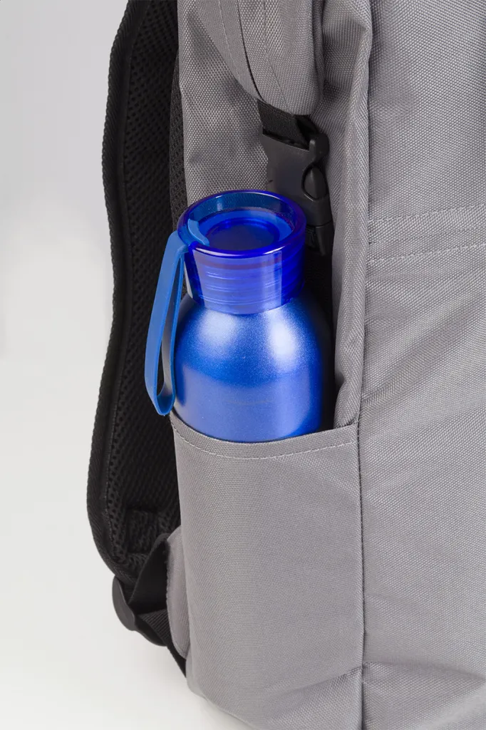 Two-tone, RPET rolltop backpack with buckle closure, zipped main compartment, padded laptop (15") and tablet (10") compartment, side pockets, padded back and shoulder straps. 300D RPET polyester with distinctive RPET label.
