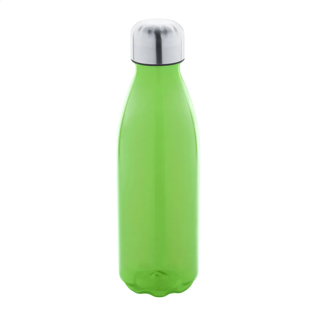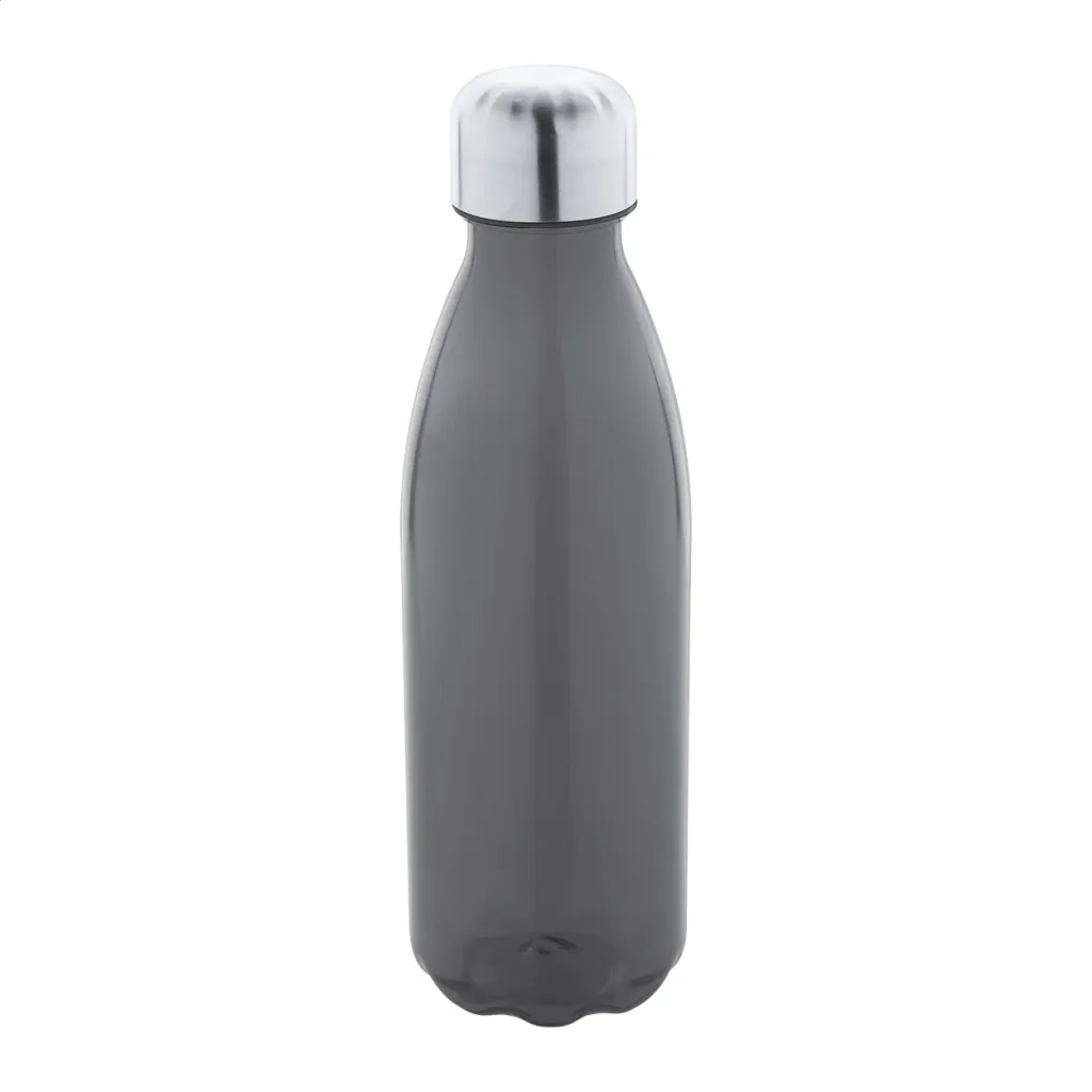 RPET bottle with stainless steel cap, 600 ml. BPA-free. Not suitable for carbonated drinks.