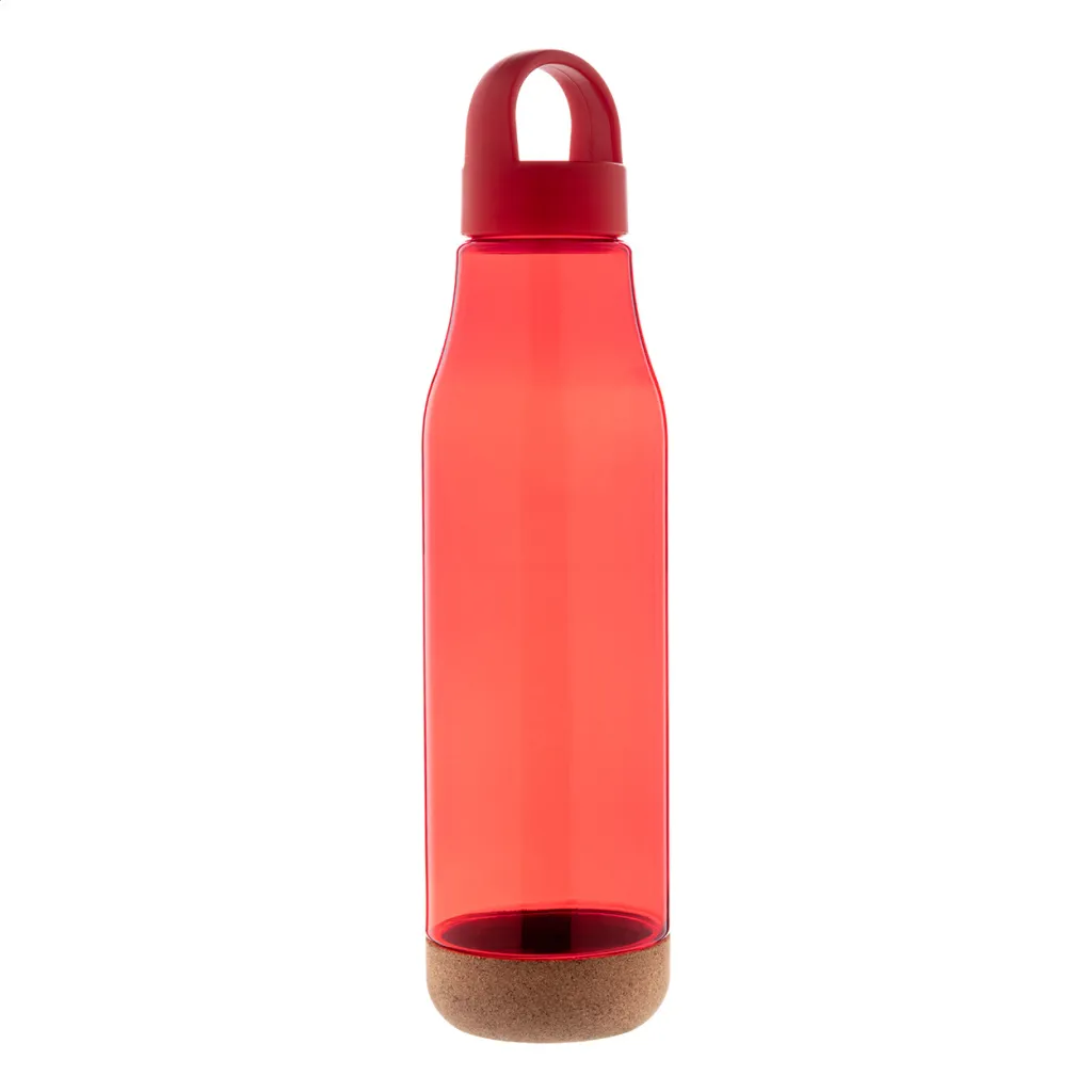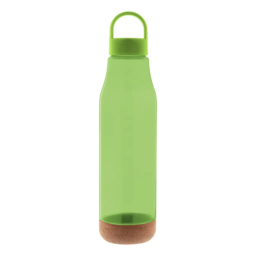 RPET bottle with natural cork base and PP plastic carry lid. 720 ml. Not suitable for carbonated drinks.