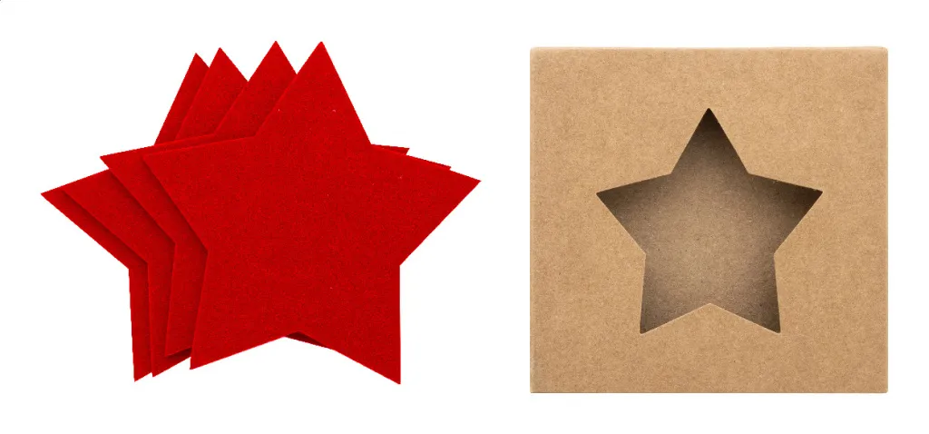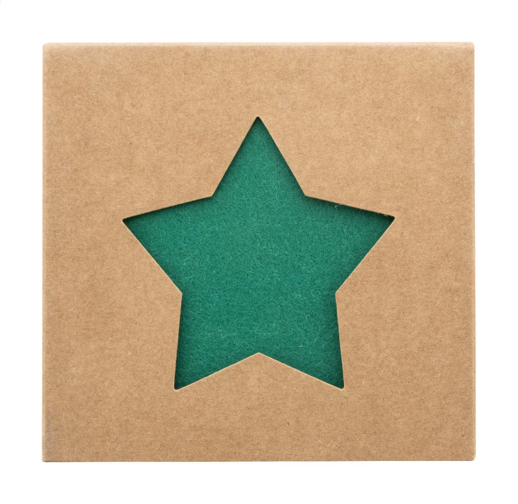 4 pc RPET felt star shaped Christmas coaster set. In kraft paper box.