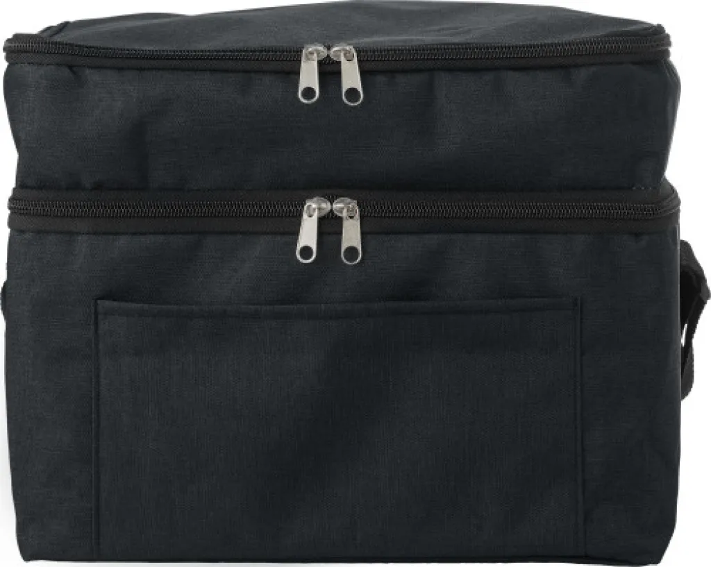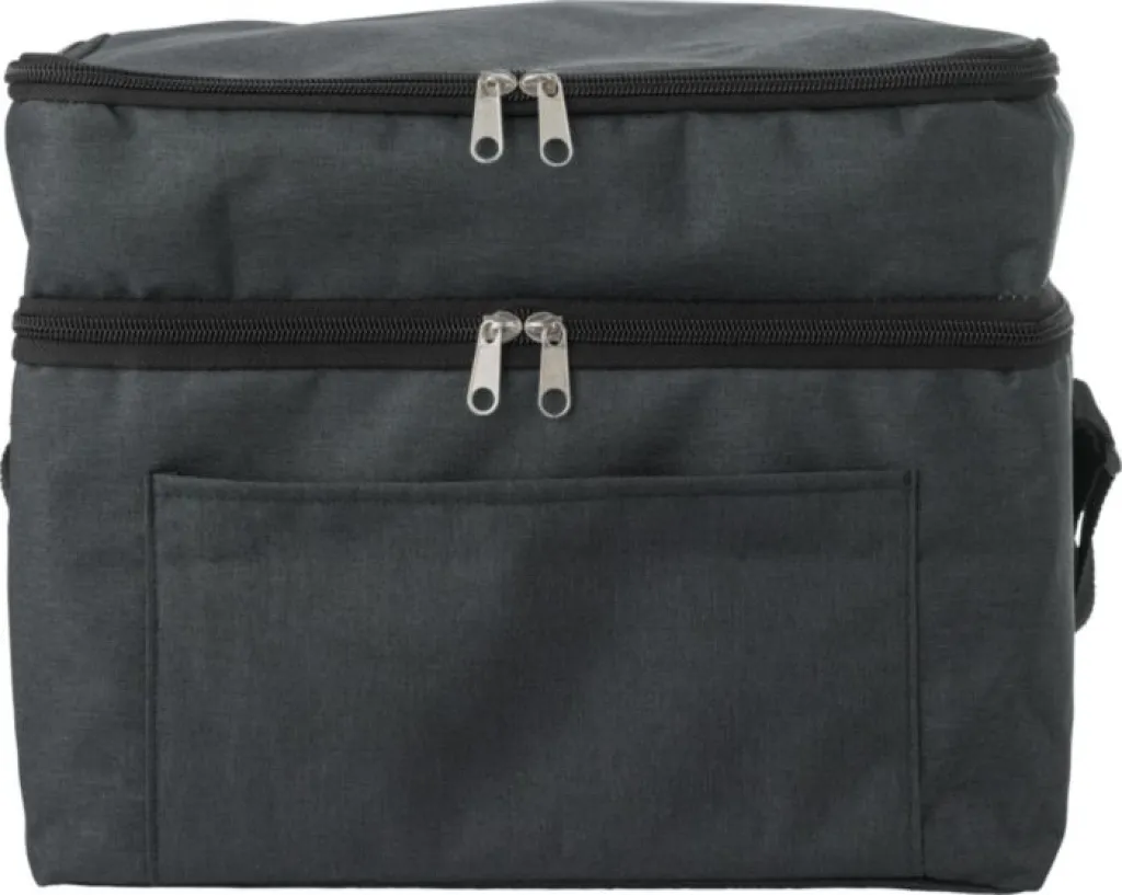 rPET cooler bag with aluminium foil inside. Two zippered compartments. Including carrying strap.