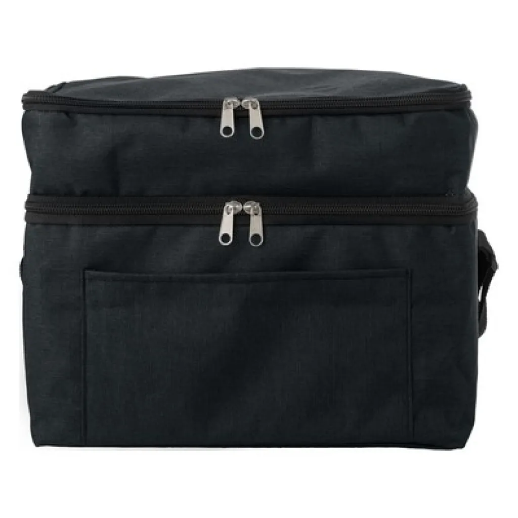 RPET cooler bag, zipped upper and main compartment, front pocket, adjustable shoulder strap