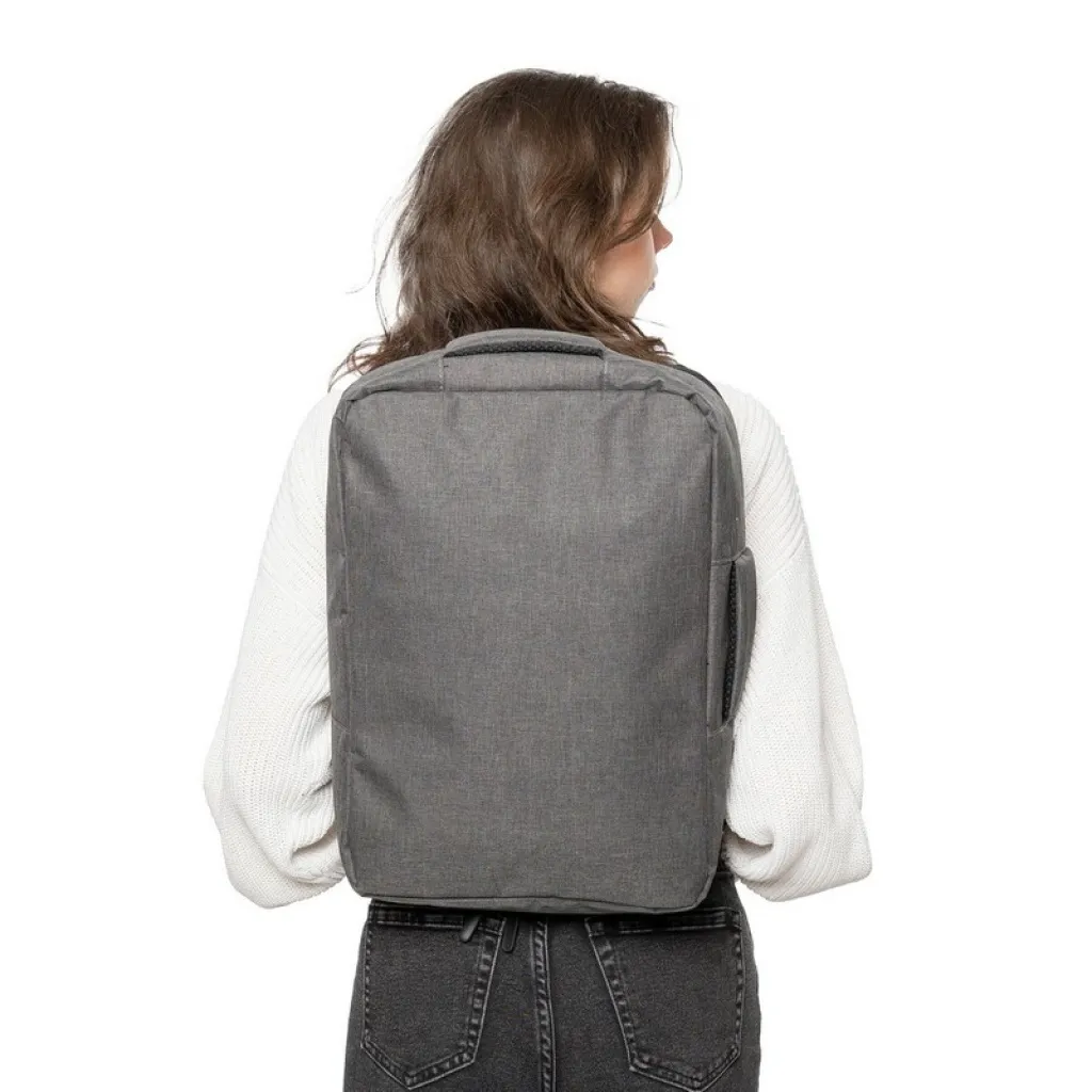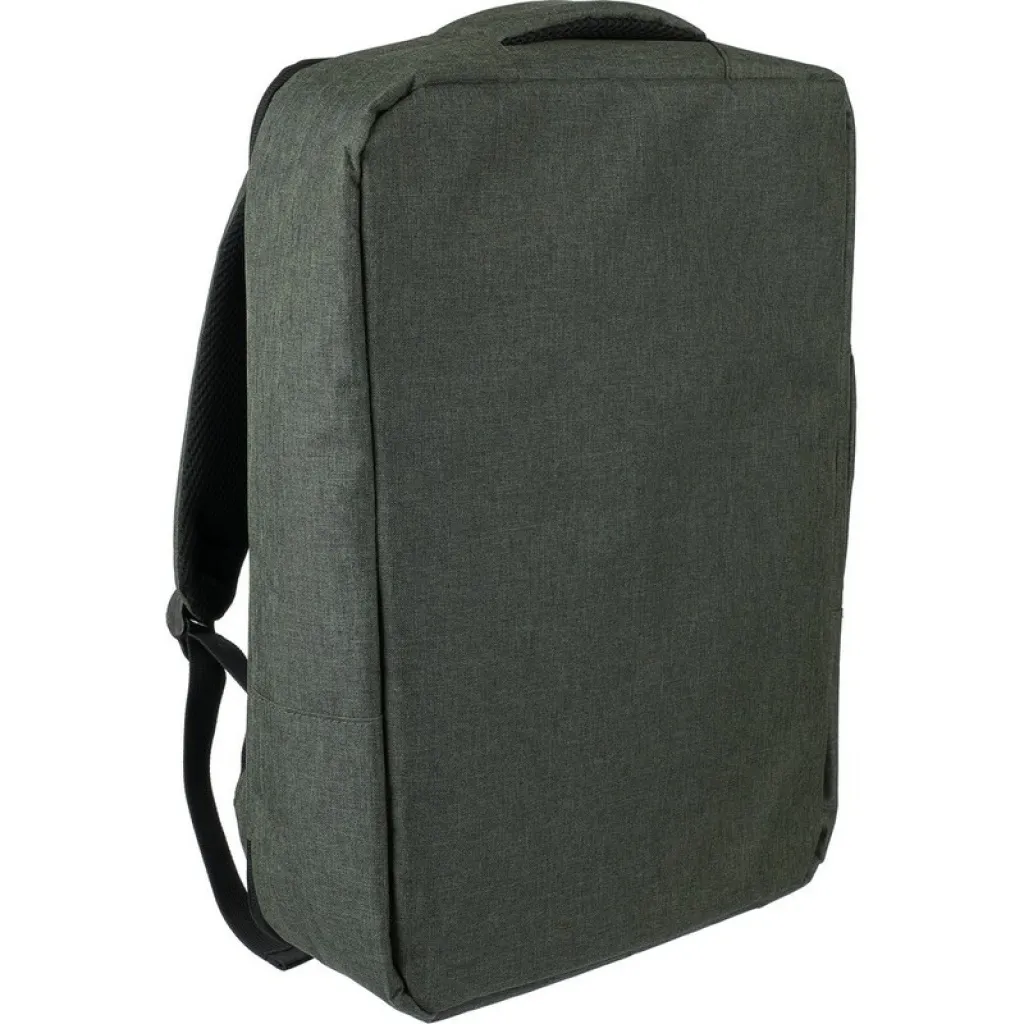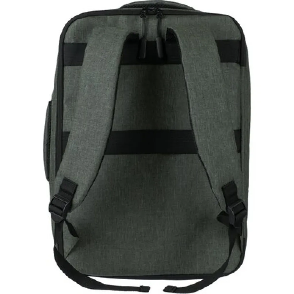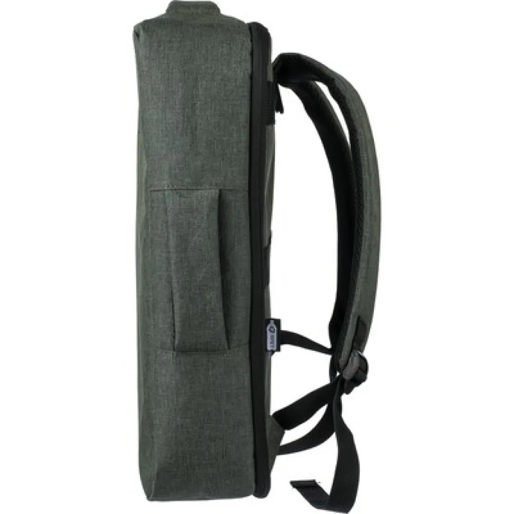 RPET laptop backpack 15", features a large zippered compartment with multiple insert pockets, a hook and loop laptop pocket for 15-inch laptop, 12L capacity, the design includes a reinforced, ventilated backing, adjustable shoulder straps, a side carrying handle, and a trolley strap, carrying capacity: 10 kg, product made from RPET polyester 300D laptop backpack with a 210D RPET lining