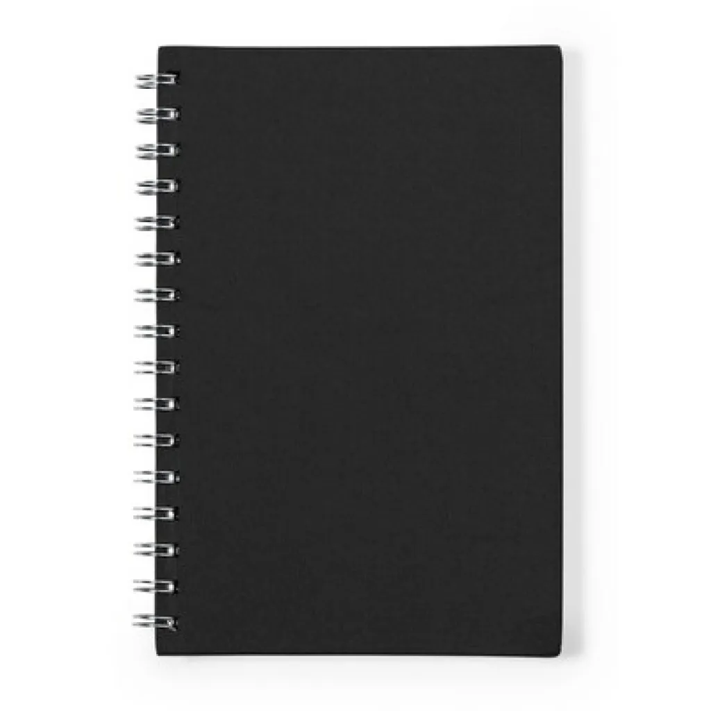 Notebook A5 (100 lined sheets), hard cover made from RPET, sheets 100% recycled and microperforated, spiral binding