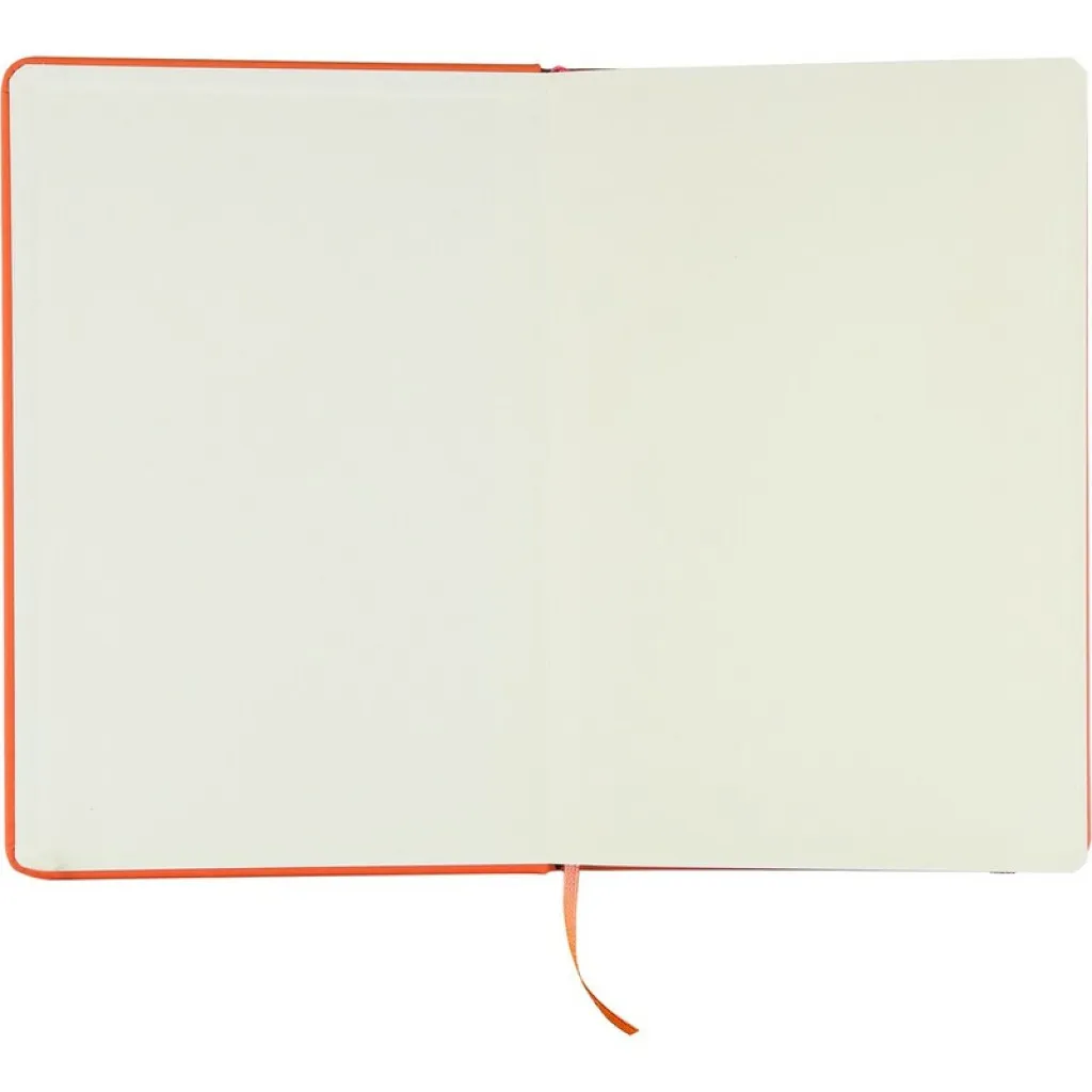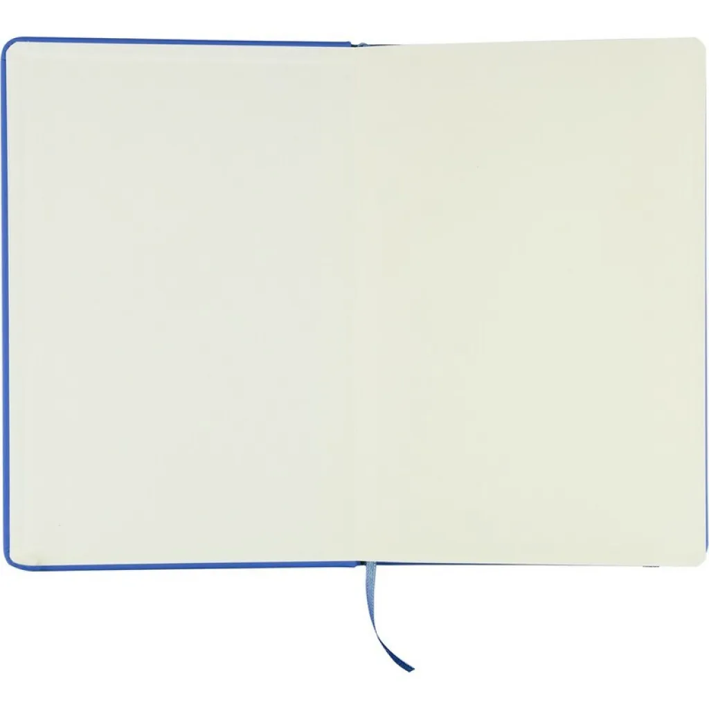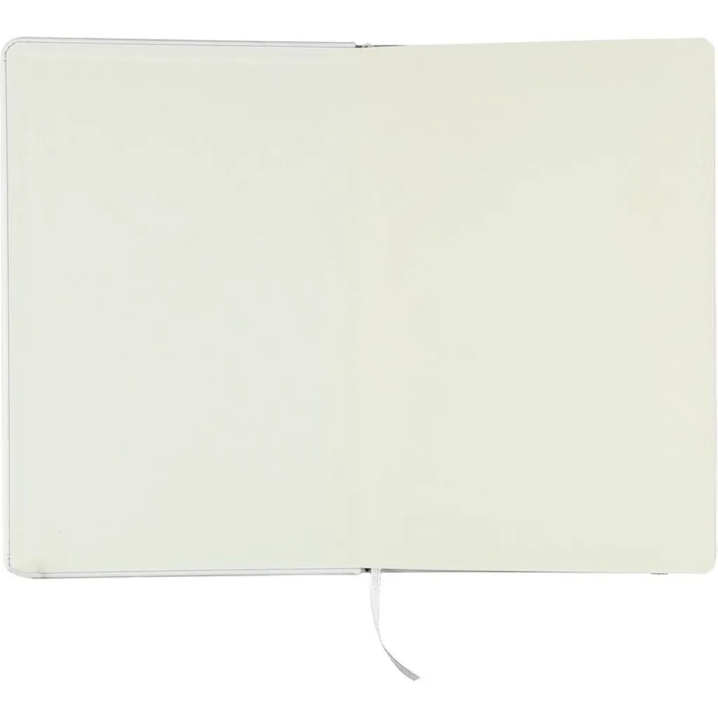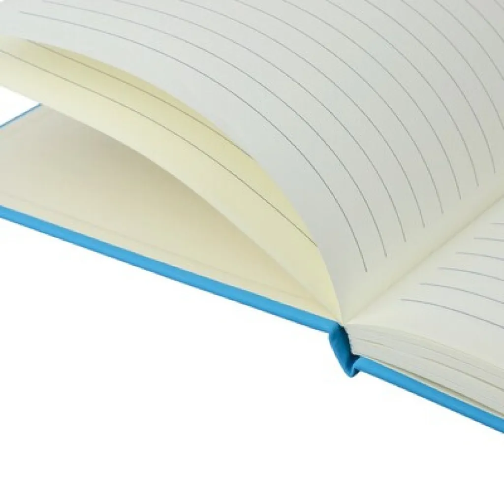 RPET notebook approx. A5 with a hard cover made of RPET PU, containing 80 lined pages (70 gsm), bookmark ribbon for easy marking of the last page or important notes, an extra coloured elastic band closure, includes recycled icon on the backside