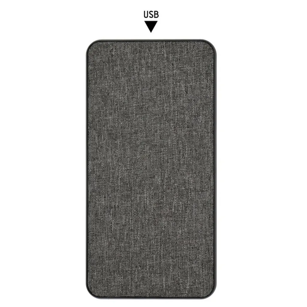 Power bank 8000 mAh with front part made of polyester RPET, 4 diodes indicating power level, 2 USB outputs (5V/2A), 2 inputs (5V/2A): micro USB and USB type C, micro USB cable included