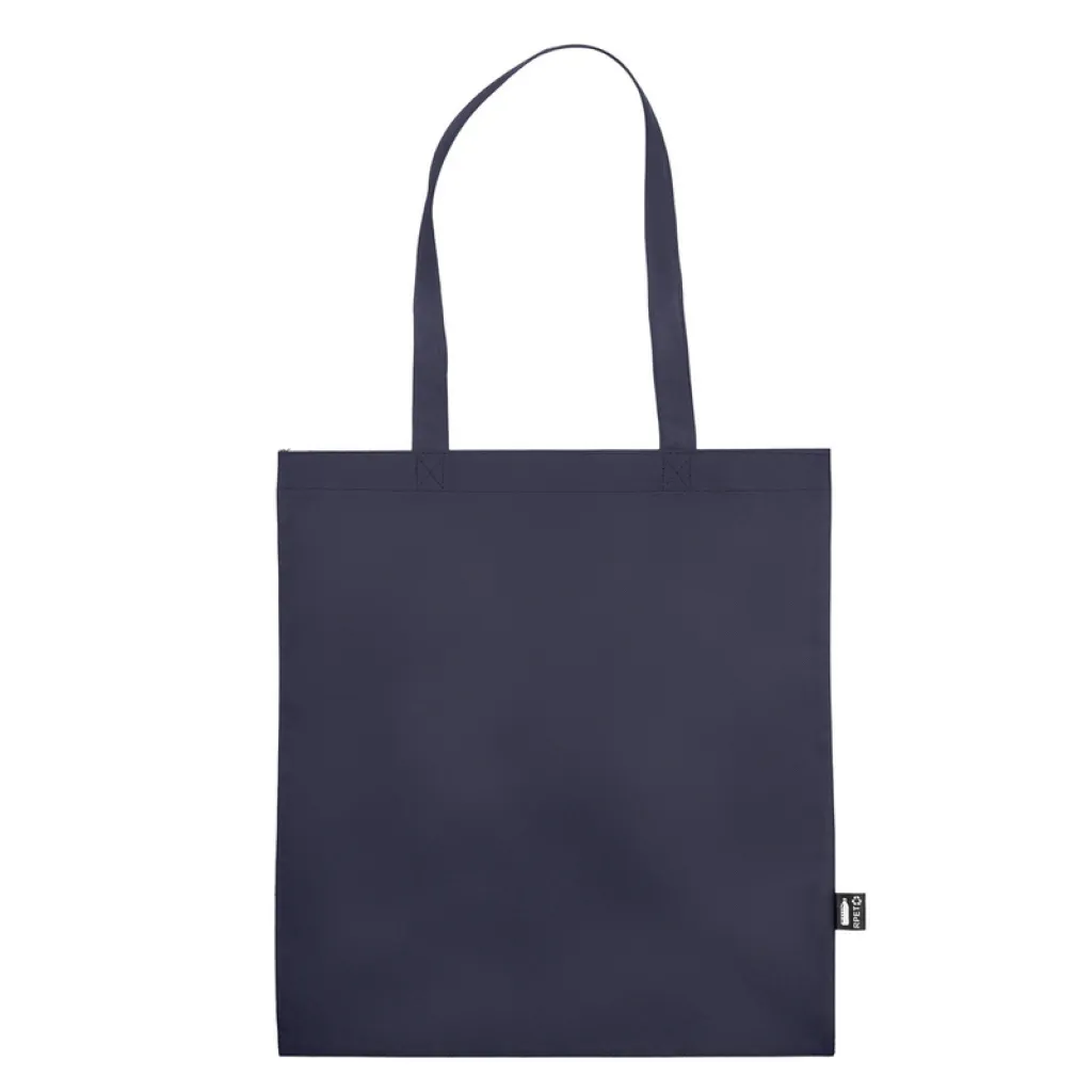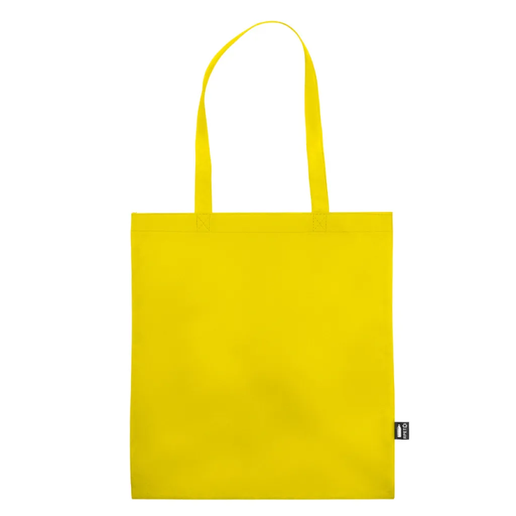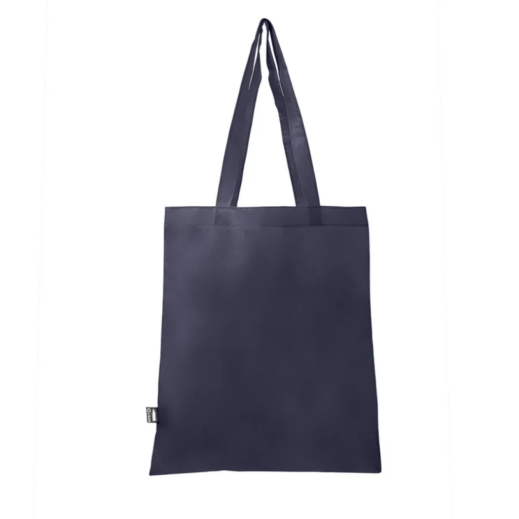 Shopping bag made from RPET, features long handles for carrying the bag on the shoulder, includes RPET icon on tag, product made from non-woven RPET 75 g/m2