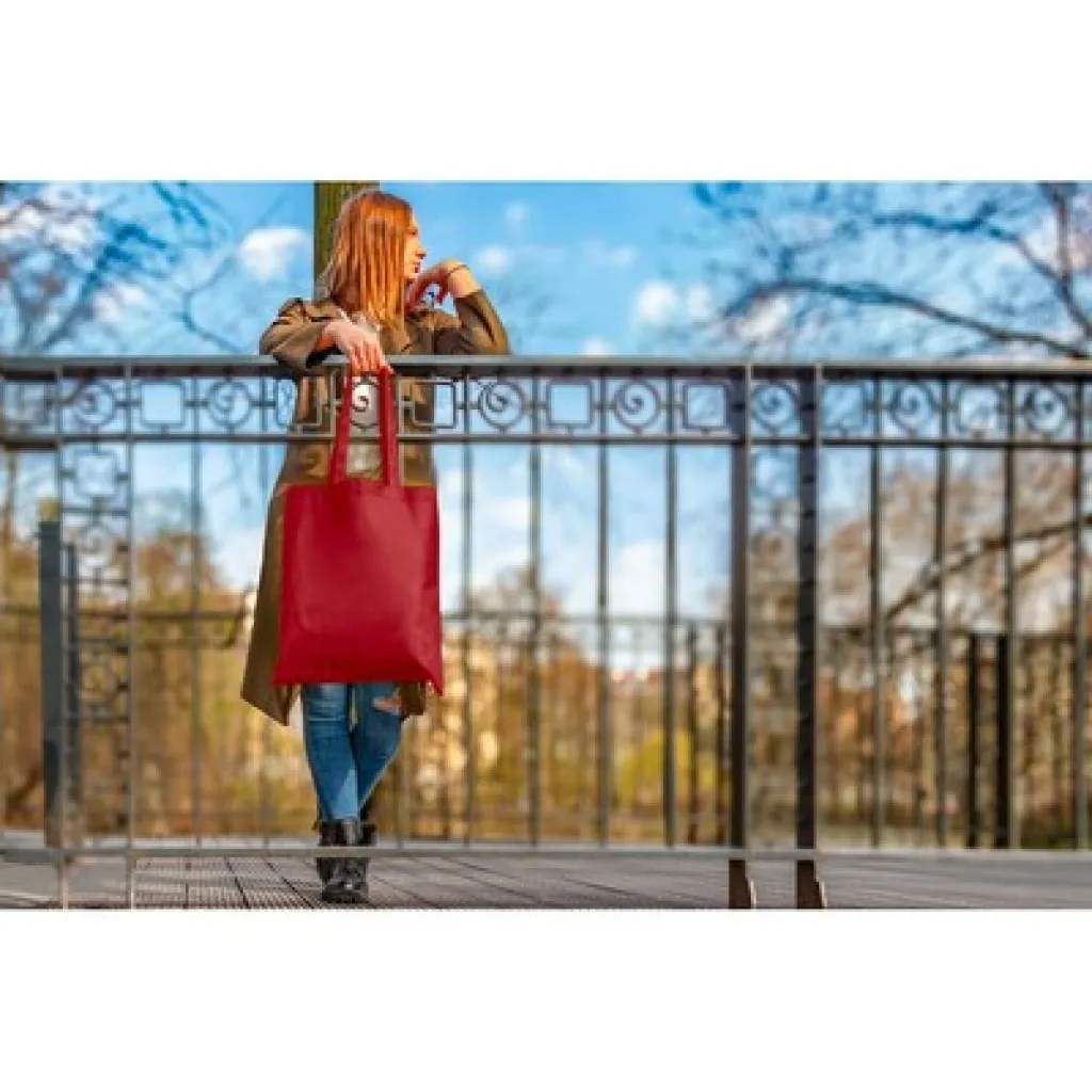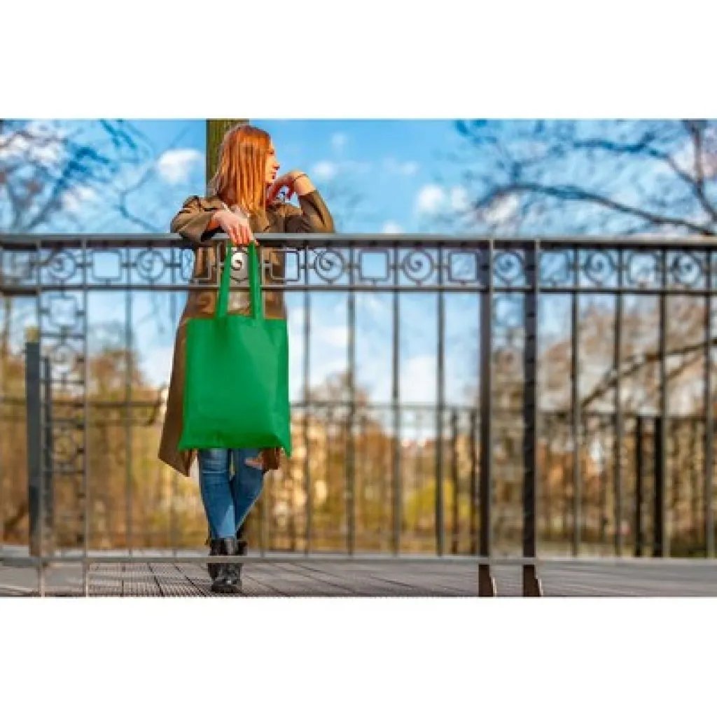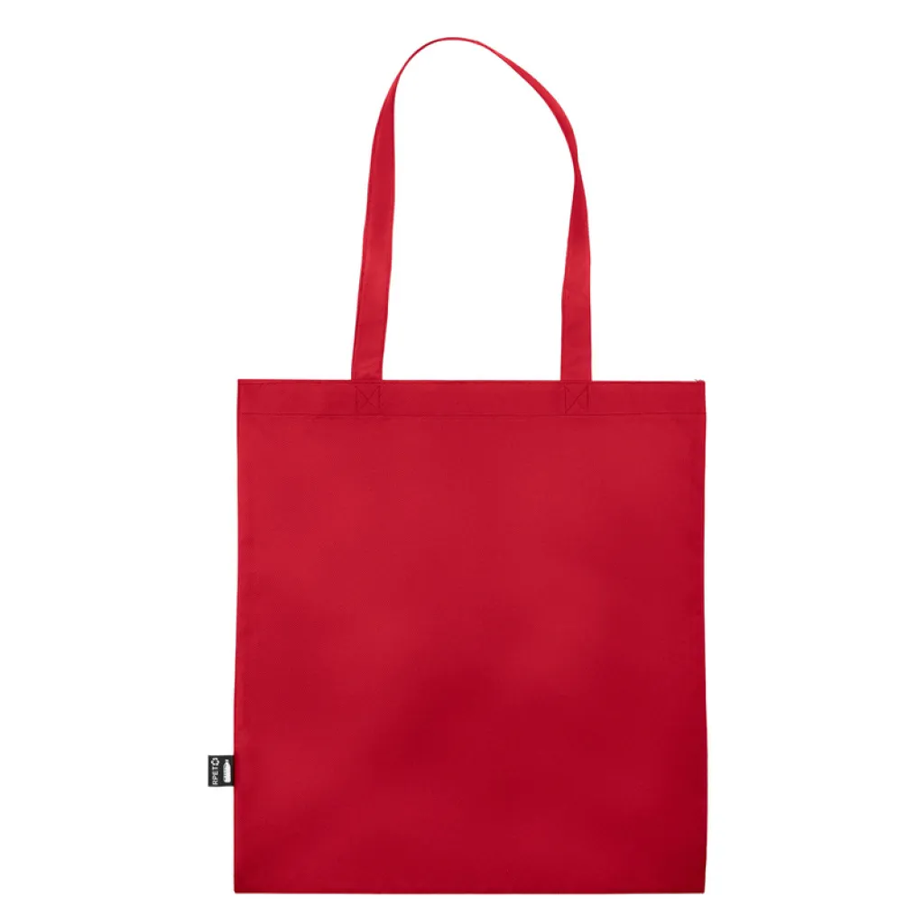 Shopping bag made from RPET, features long handles for carrying the bag on the shoulder, includes RPET icon on tag, product made from non-woven RPET 75 g/m2