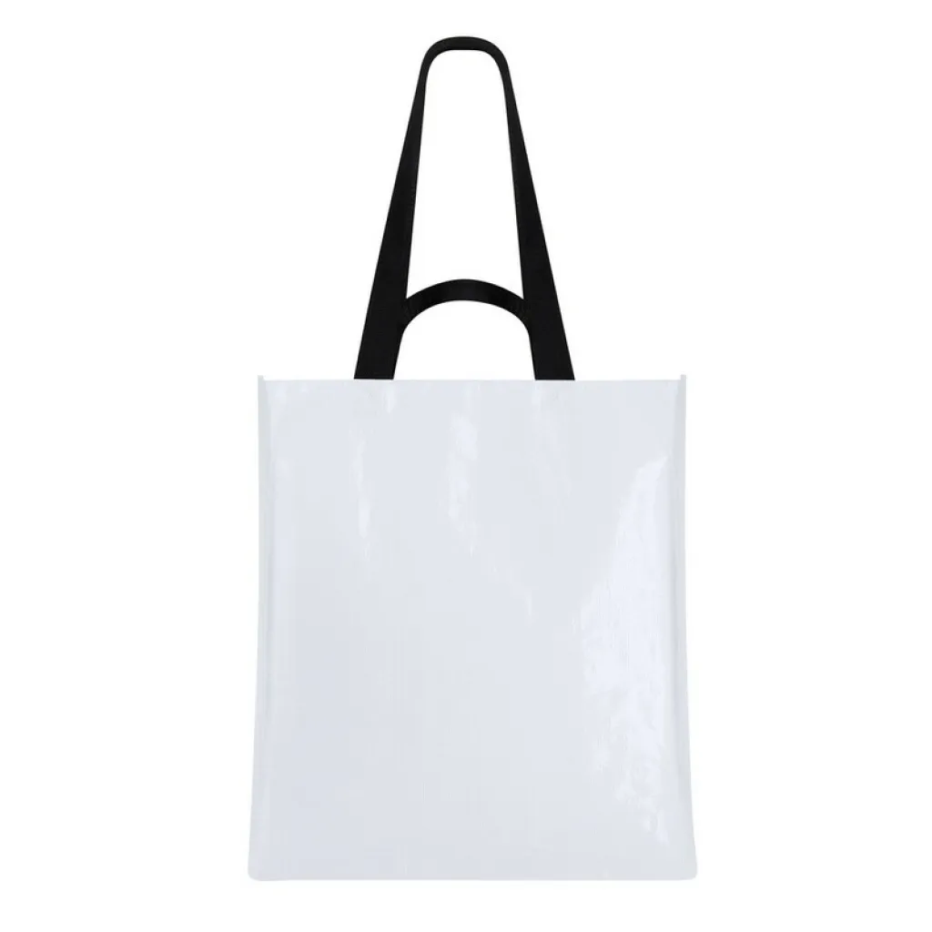 Shopping bag, long handles for carrying on shoulder, product made of laminated PP-woven RPET