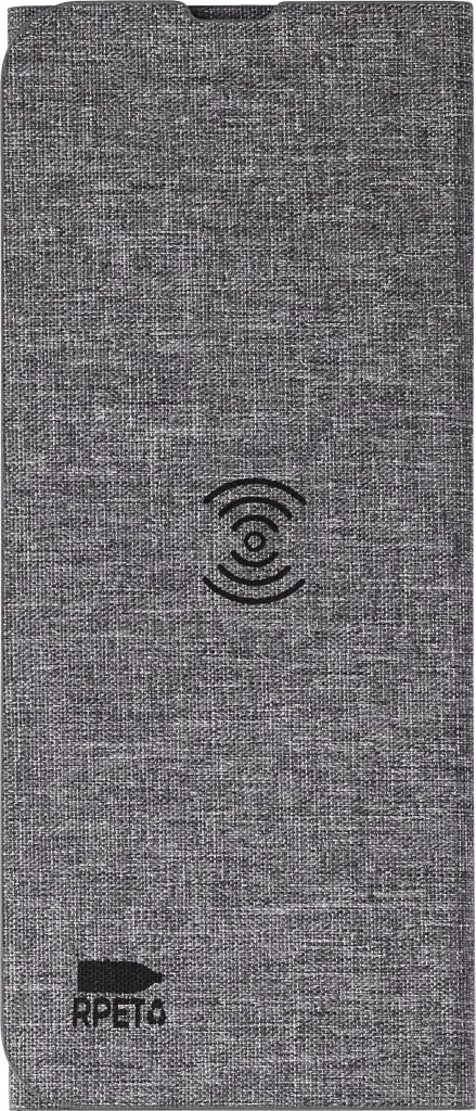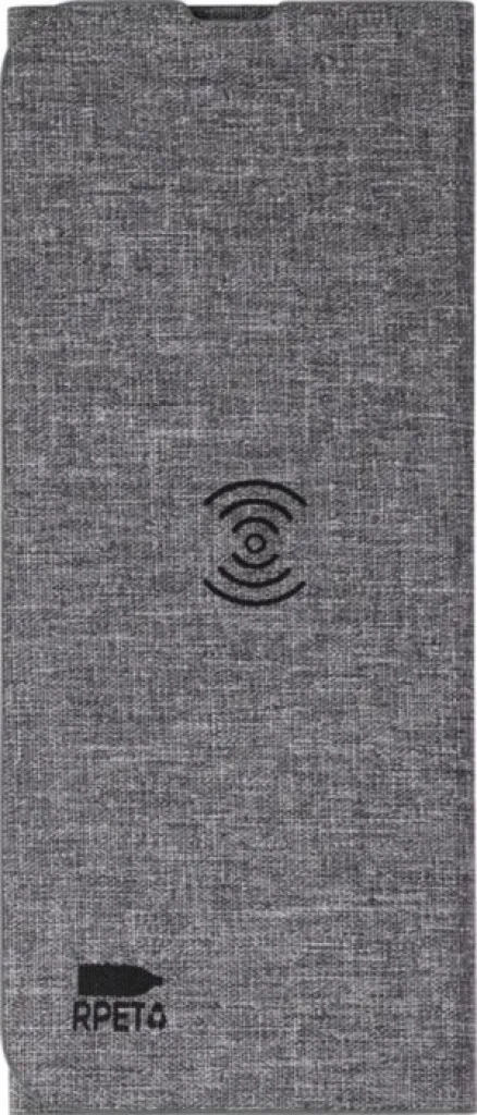 rPET wireless fast charger mousemat (10W). Foldable to use as phonestand. Packed per piece in brown carton box. With rPET logo.