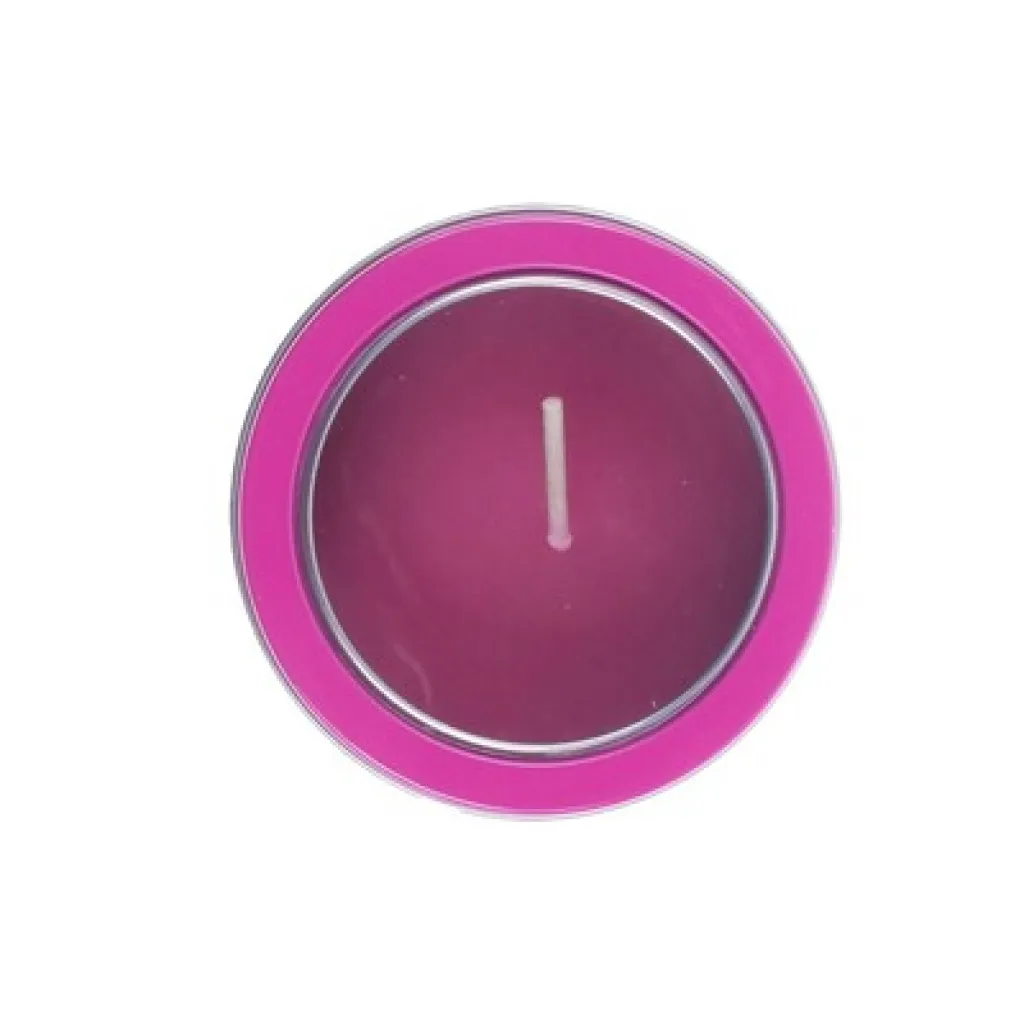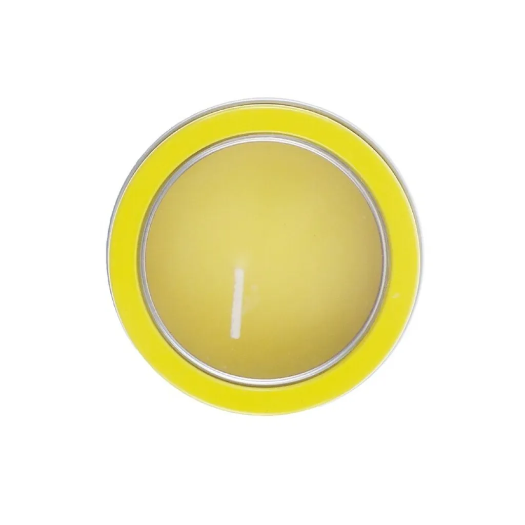 Vanilla fragrance aromatic candle. Presented in an original metallic jar with transparent window in a wide range of bright tones.