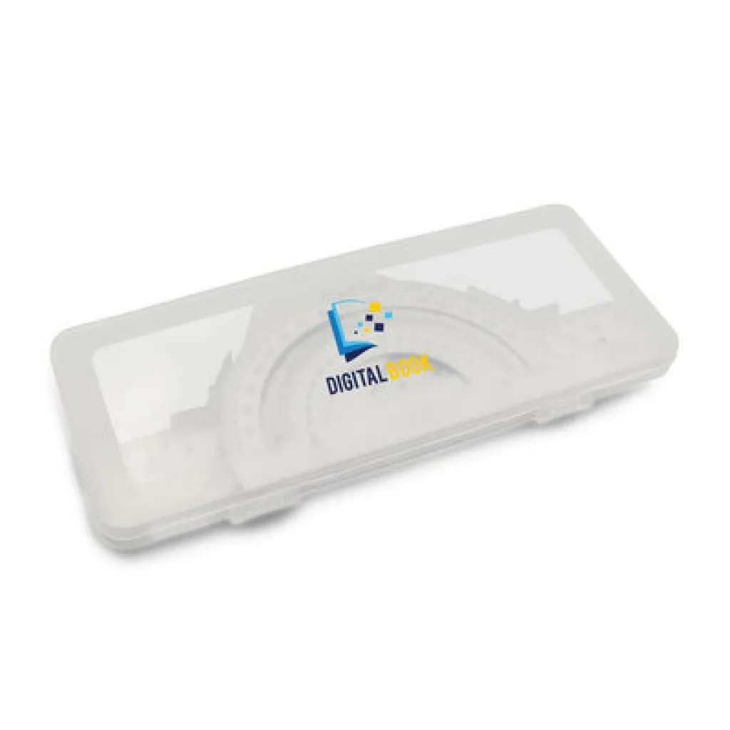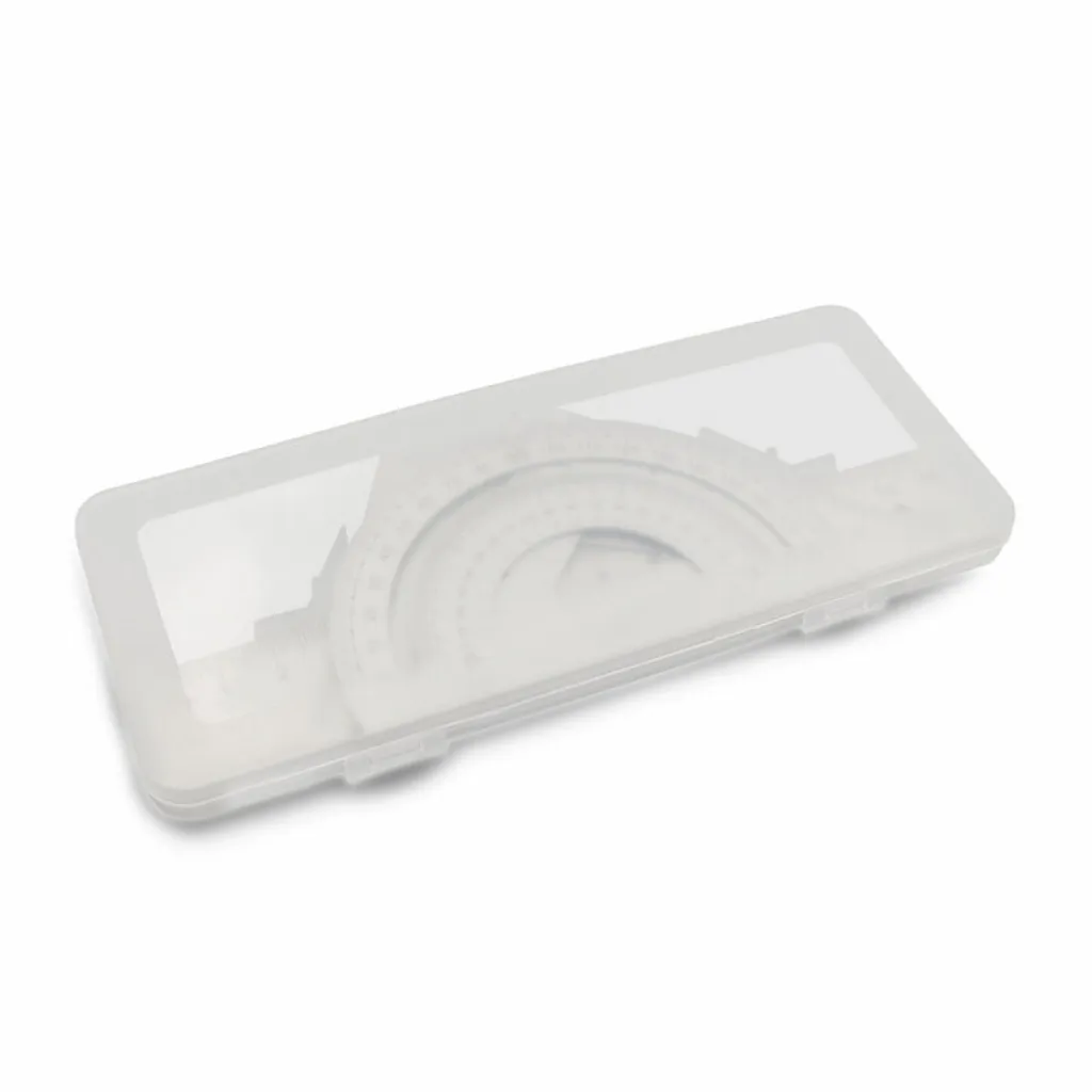 School set, ruler, 2 set squares and protractor in a box with milky-white finish, product made of aluminium alloy and plastic