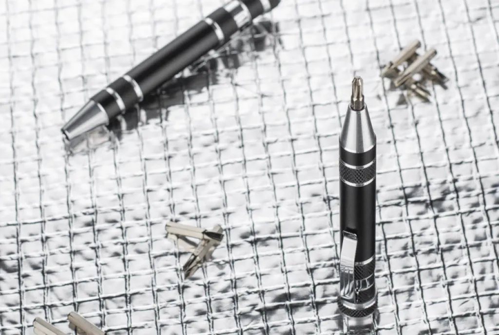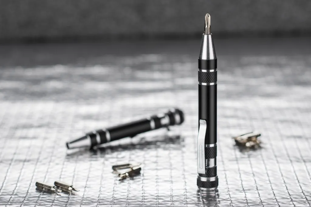 Screwdrivers set which contains 8 different endings. Clip enables to hang it to the pocket. Screwdrivers endings are mounted with magnet. Logo can be engraved on the surface.