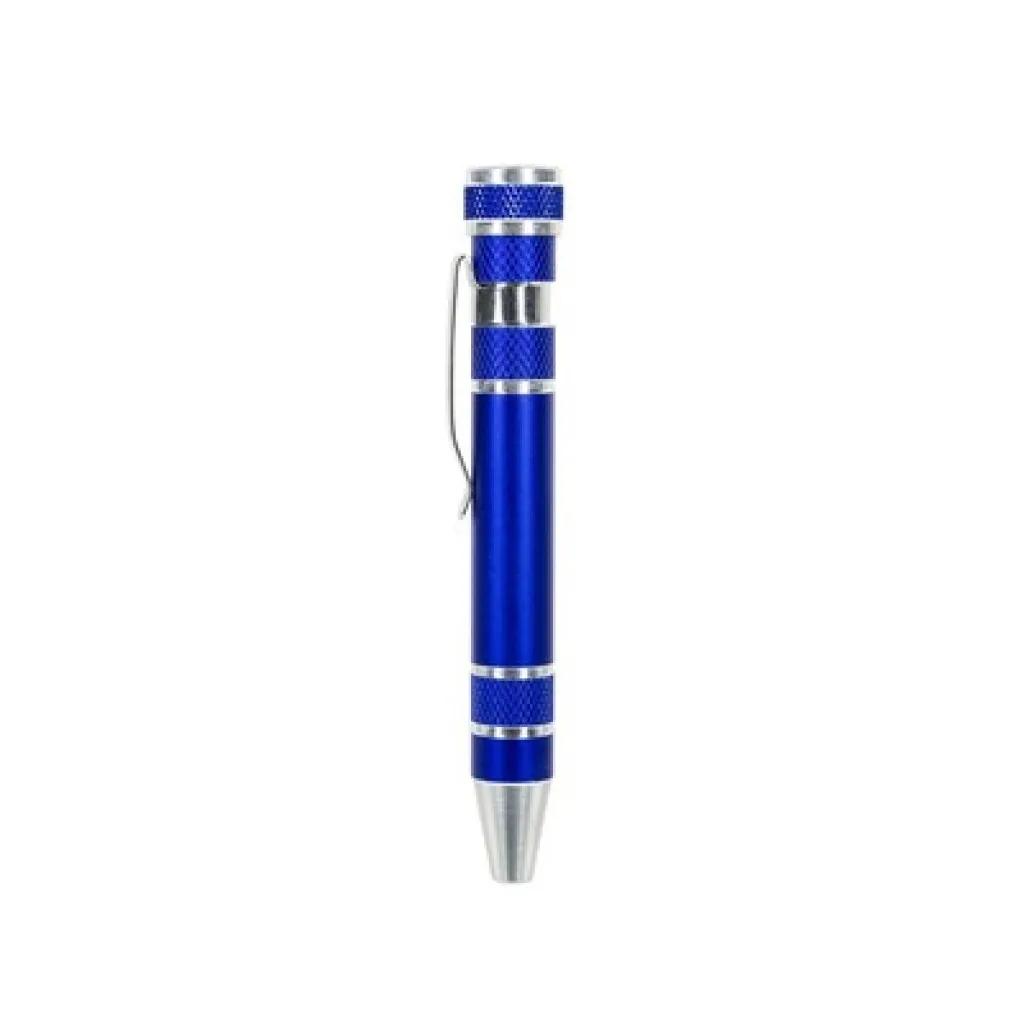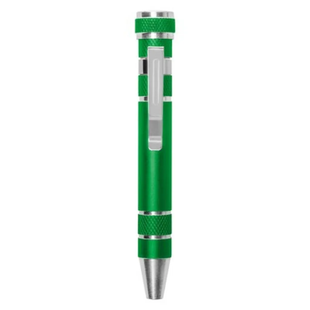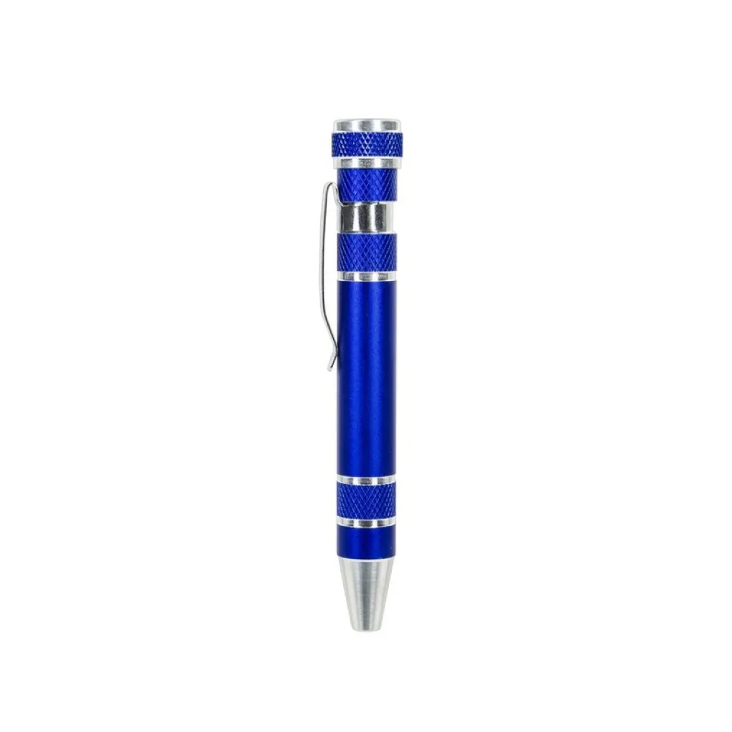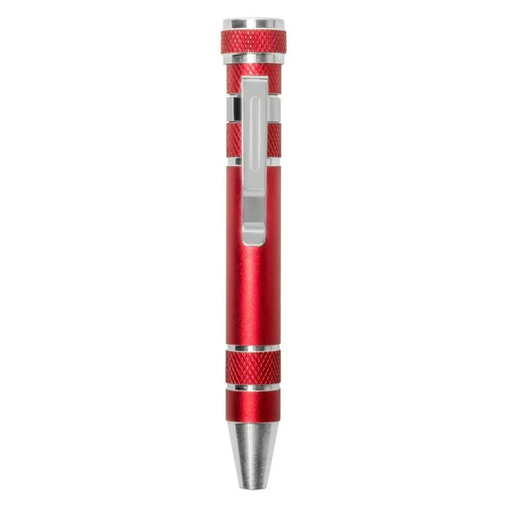 Pen shaped screwdriver with 4 flat head and 4 Philips screwdriver bits, with clip