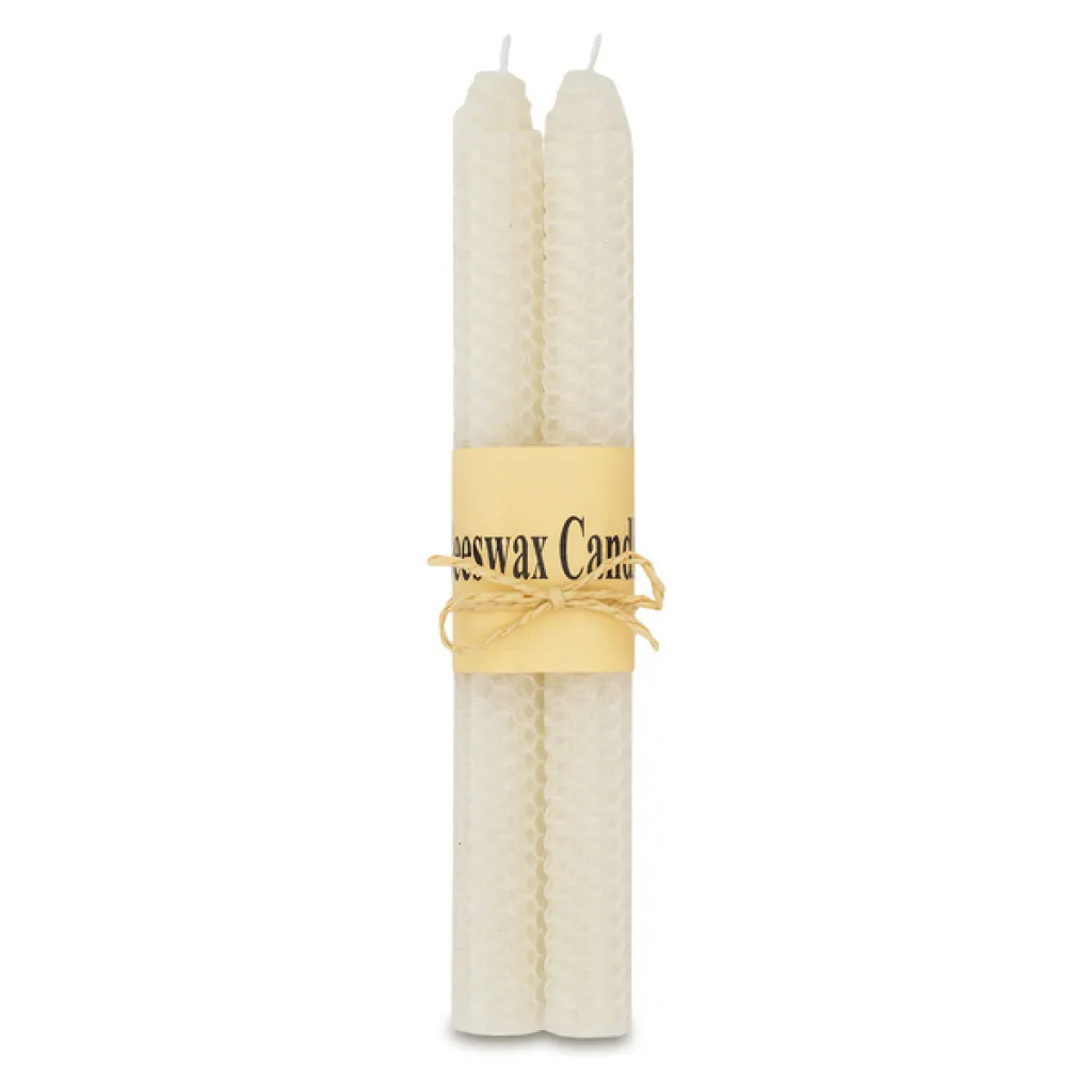 Set of 2 long candles made by hand from rolled wax sheets. Packed in a cardboard box.
