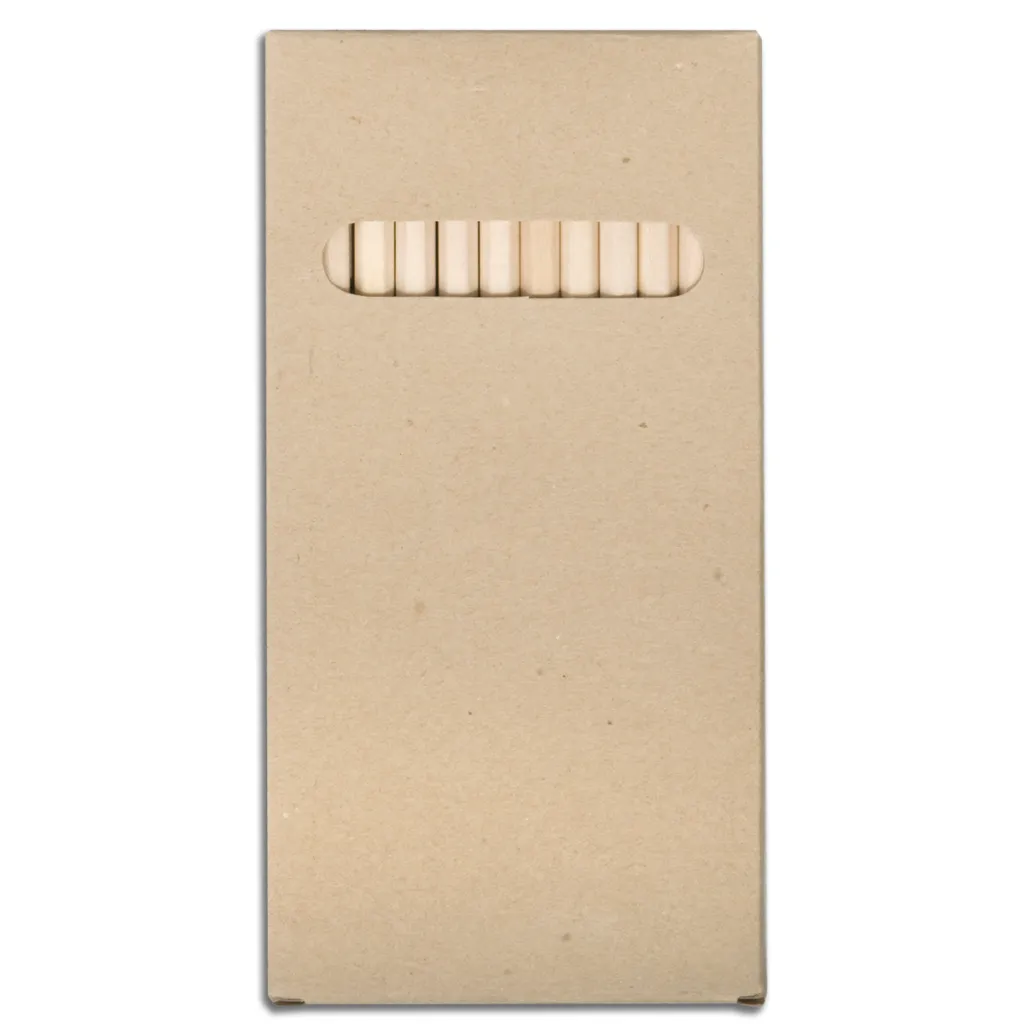 A set of 12 crayons (18 cm) made of wood in a cardboard box.