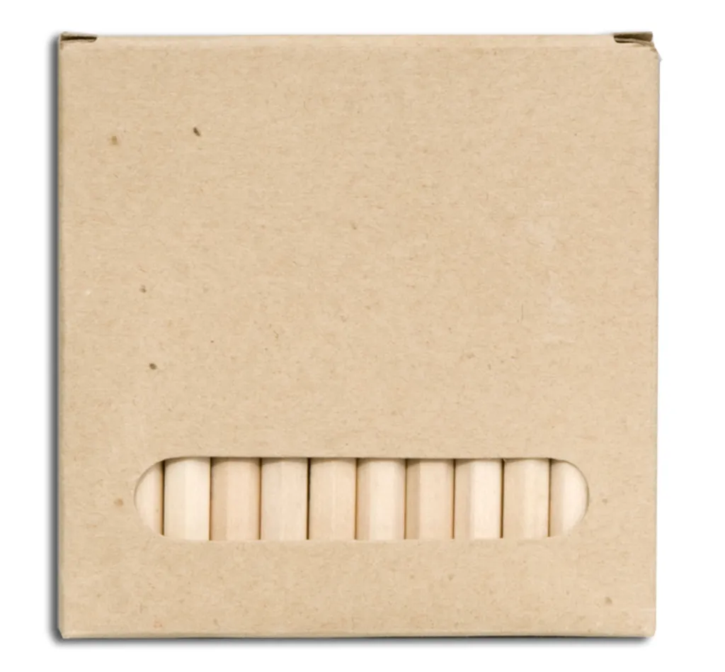A set of 12 crayons (9 cm) made of wood in a cardboard box.