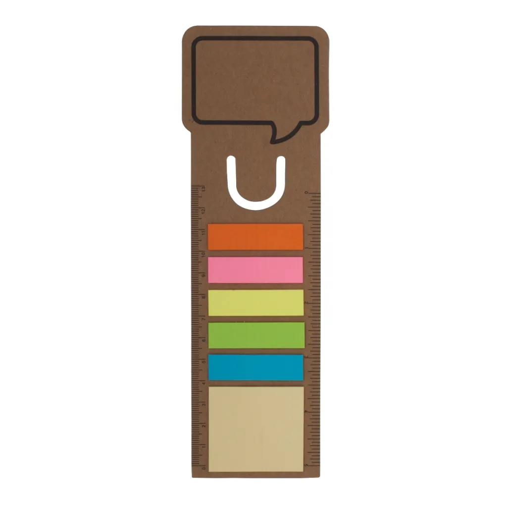 Tab and ruler (13 cm / 5 ") Made of recycled materials (500 g / m2), yellow sticky papers (75 g / m2) and 3 x 15 note papers 75 g / m2.