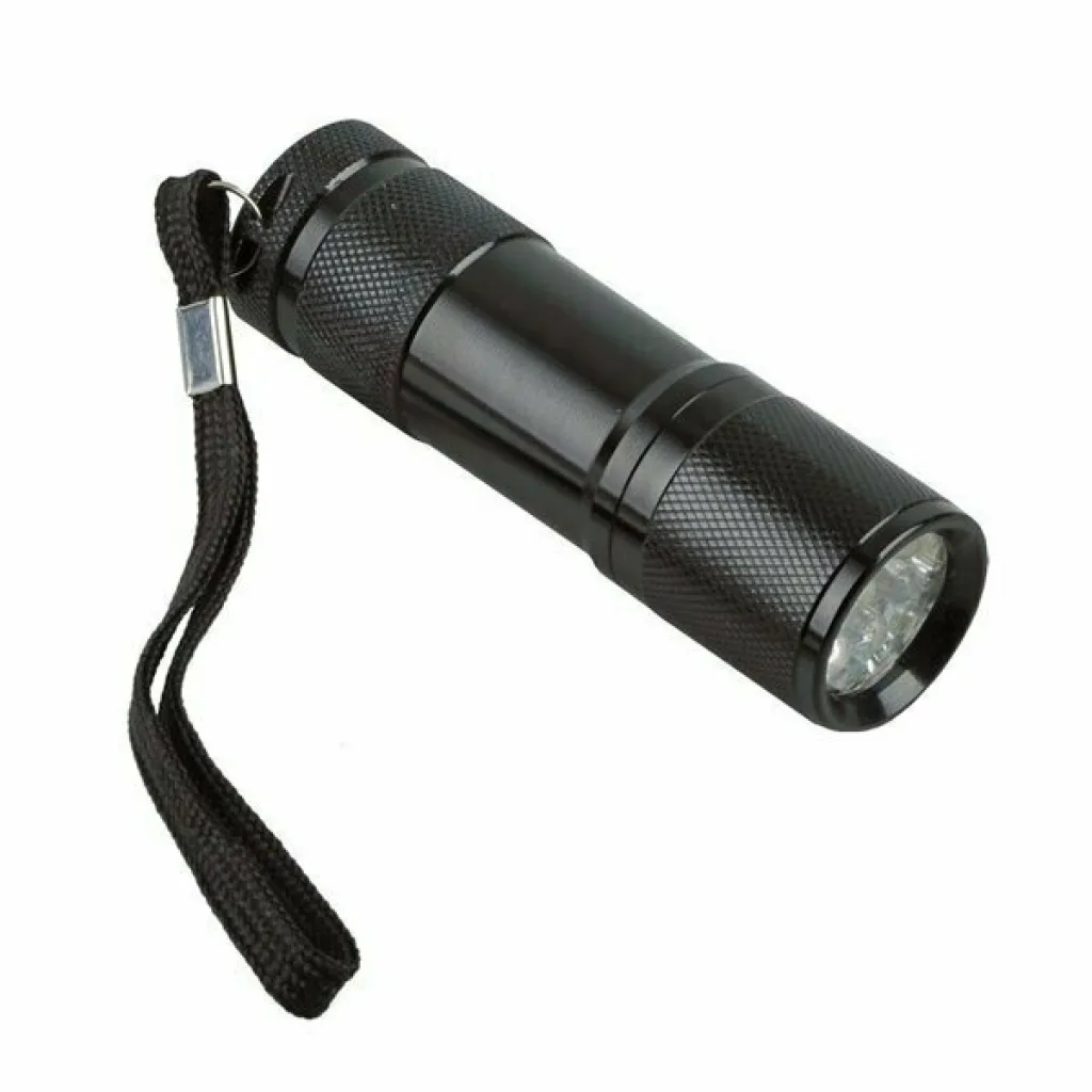 11-function tool set and 9 LED torch in gift box. 3 AAA batteries included.