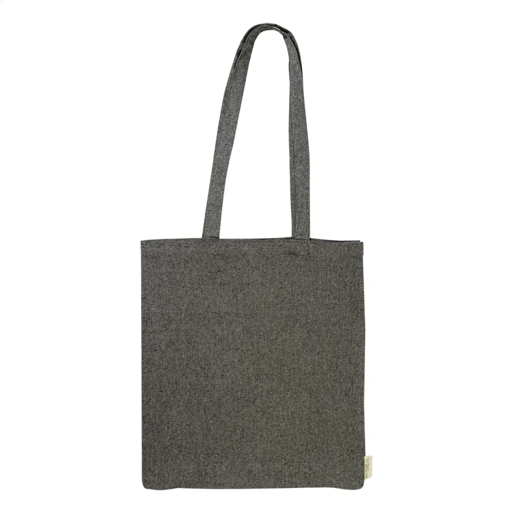 Reusable, recycled cotton shopping bag with long handles. 100% recycled cotton, 140 g/m².