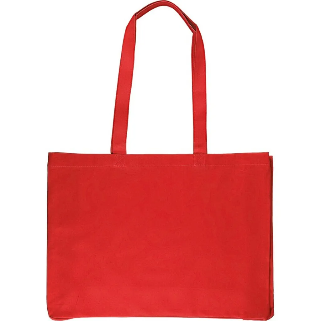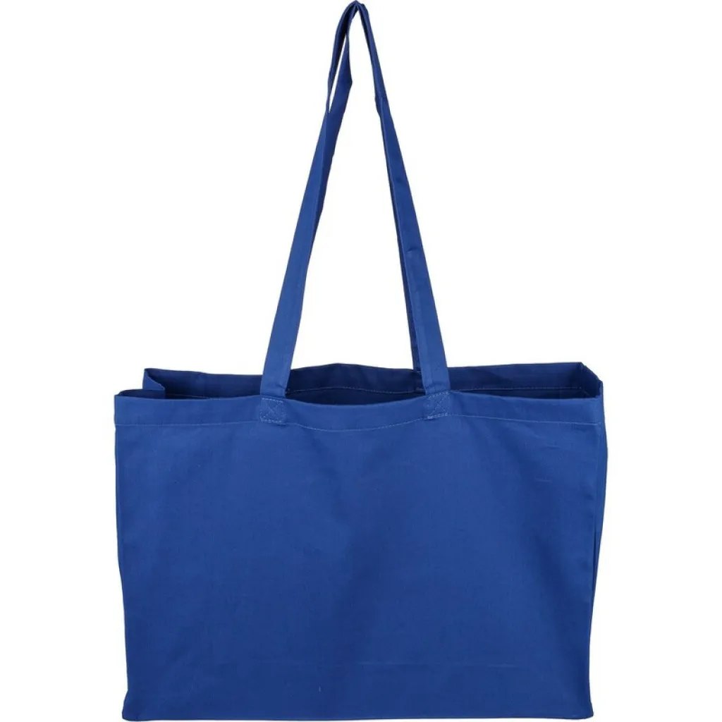 Shopping bag features long handles for carrying on the shoulder, maximum carrying weight 8 kg, includes OEKO-TEX icon on the tag, product made from OEKO-TEX cotton with a grammage of 220 g/m²
