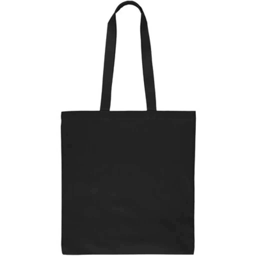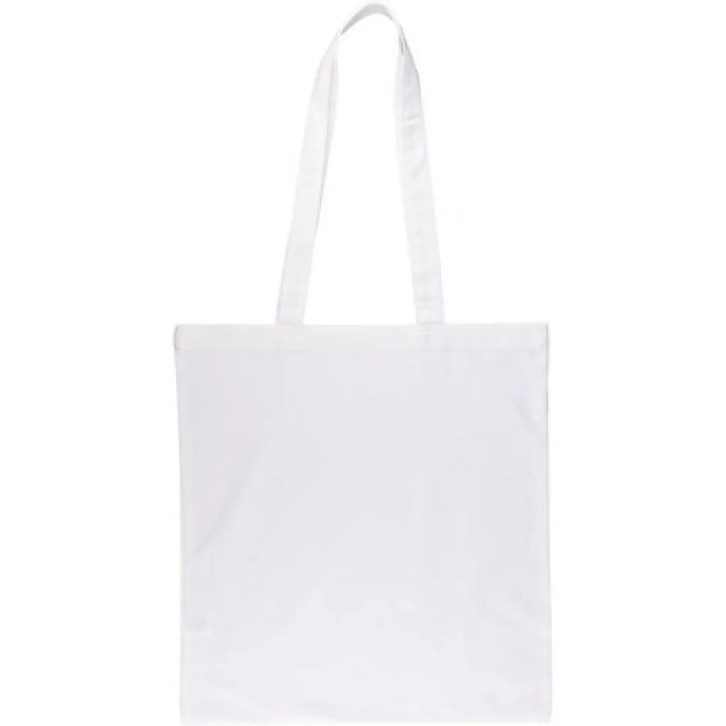 Shopping bag features long handles for carrying on the shoulder, maximum carrying weight 8 kg, includes OEKO-TEX icon on the tag, product made from OEKO-TEX cotton with a grammage of 140 g/m²