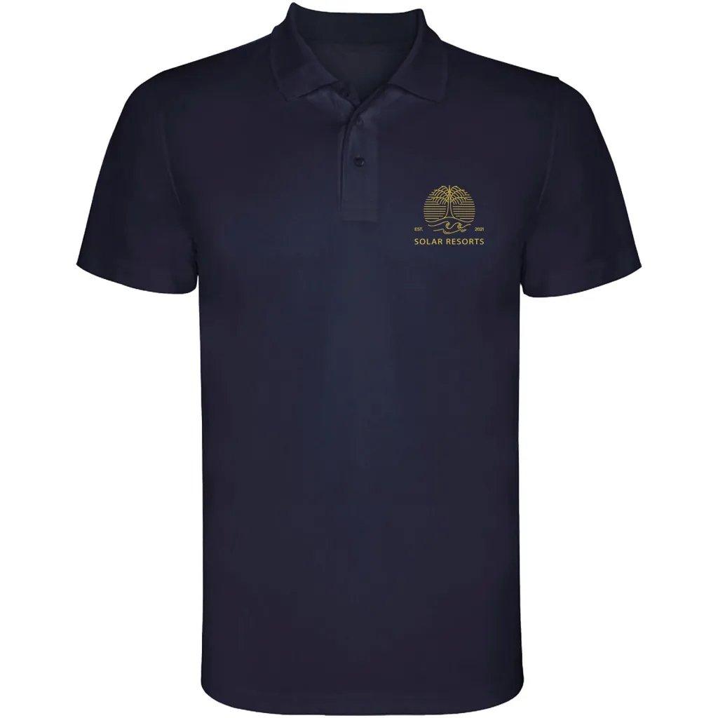 Short-sleeve technical polo-shirt. Knitted collar with 3-button placket. Breathable, easy to wash and dry fabric. Removable label. Technical fabric. Breathable fabric. The model is 184 cm and is wearing size L.