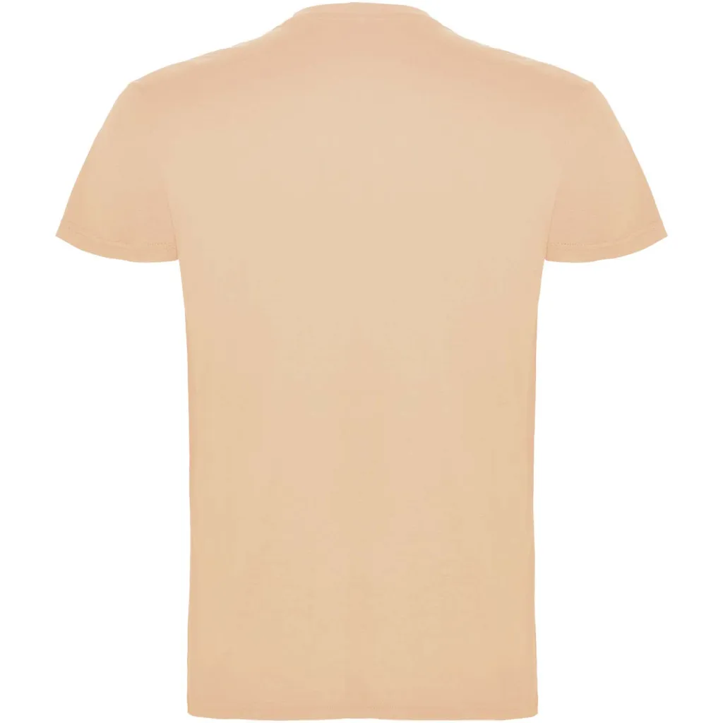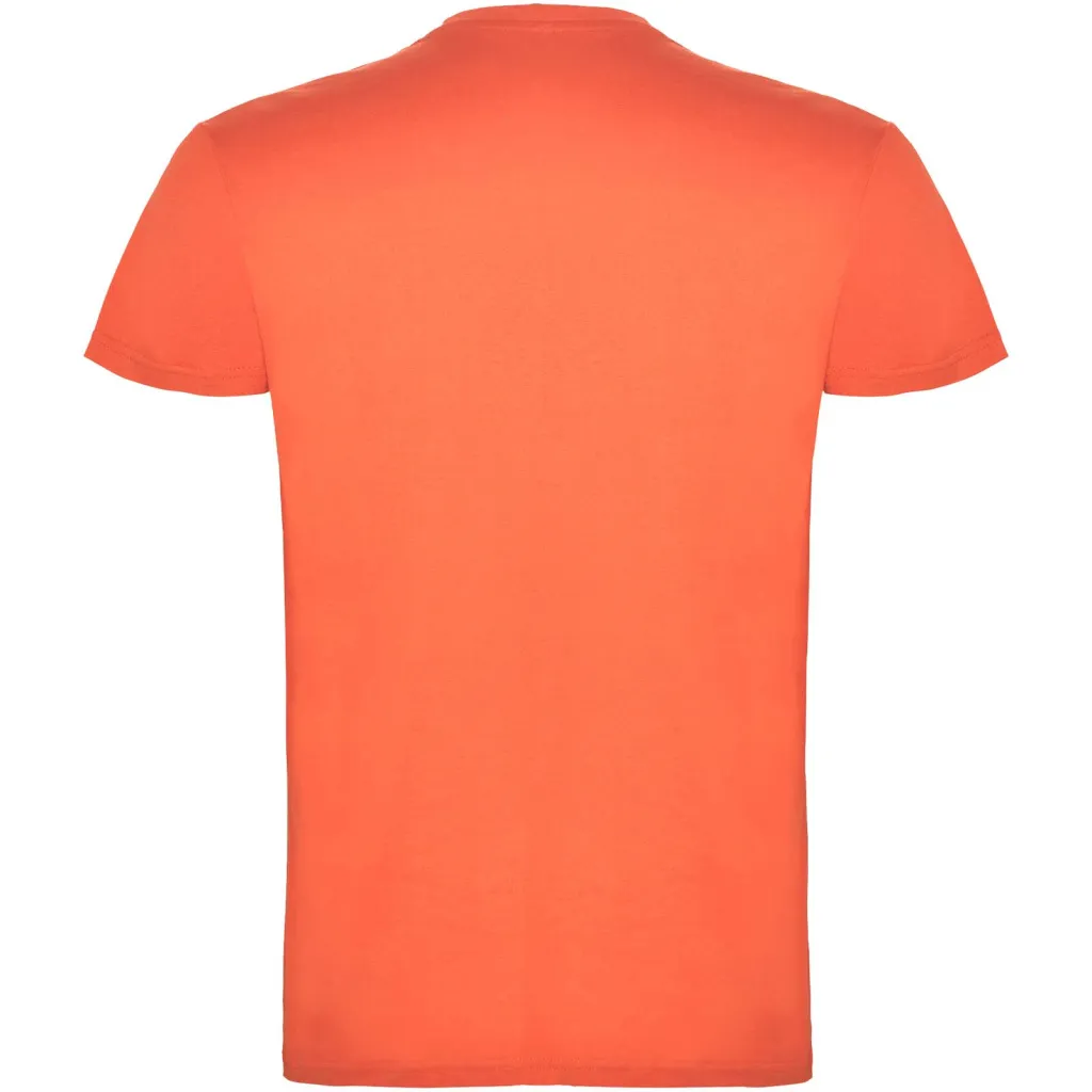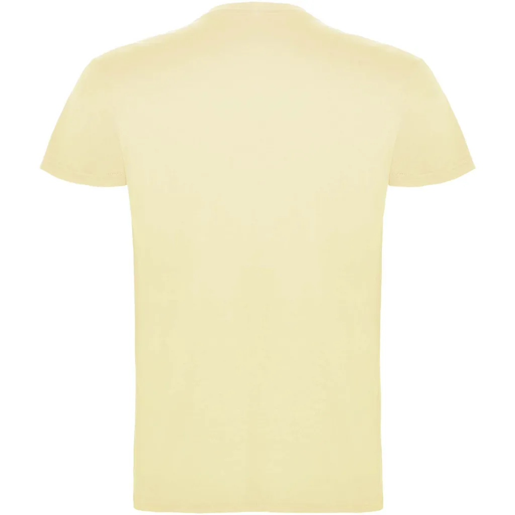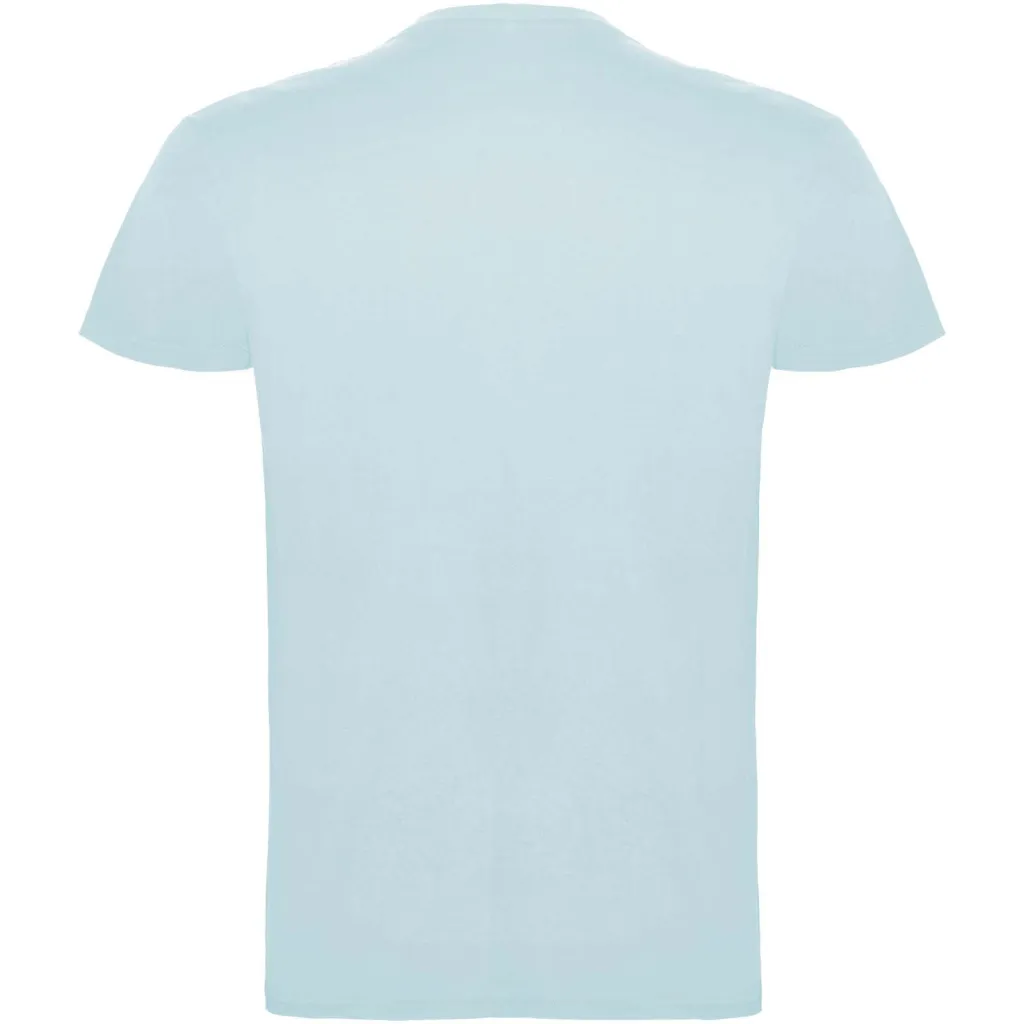 Short-sleeve t-shirt with double layer crew neck in elastane, made in tubular fabric for adults. Reinforced covered seams in collar. Removable label. The model is 190 cm and is wearing size L.