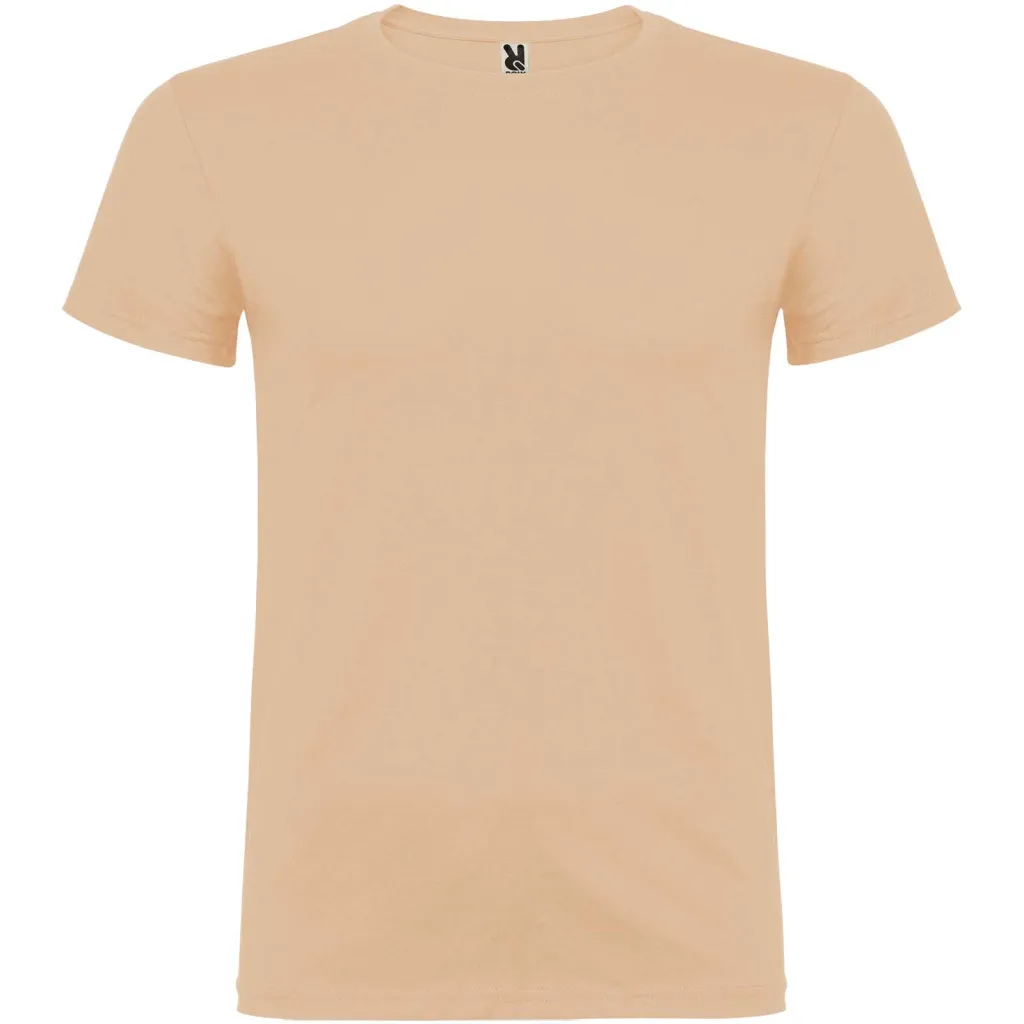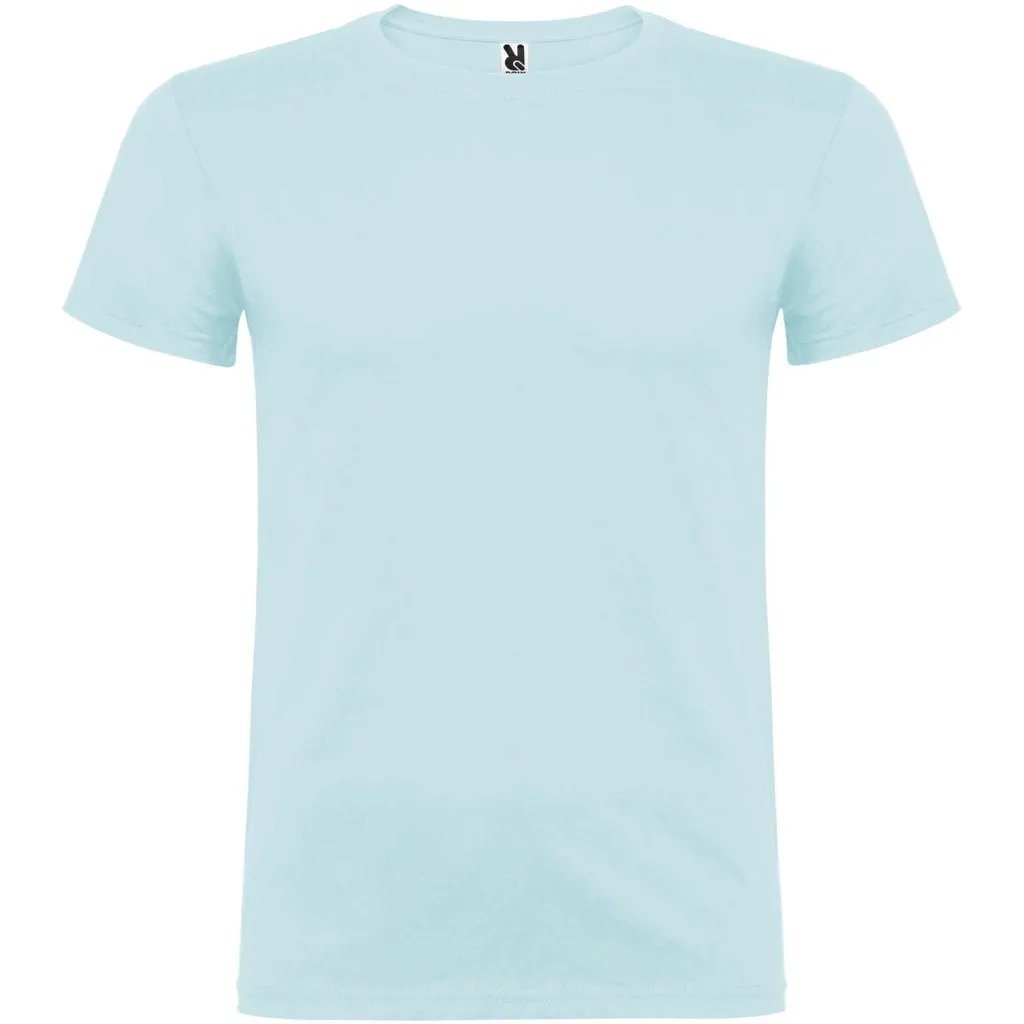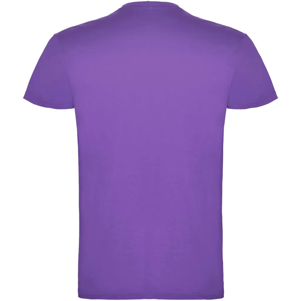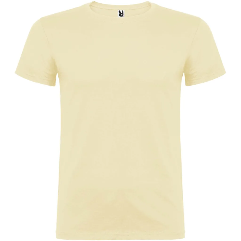 Short-sleeve t-shirt with double layer crew neck in elastane, made in tubular fabric for adults. Reinforced covered seams in collar. Removable label. The model is 190 cm and is wearing size L.