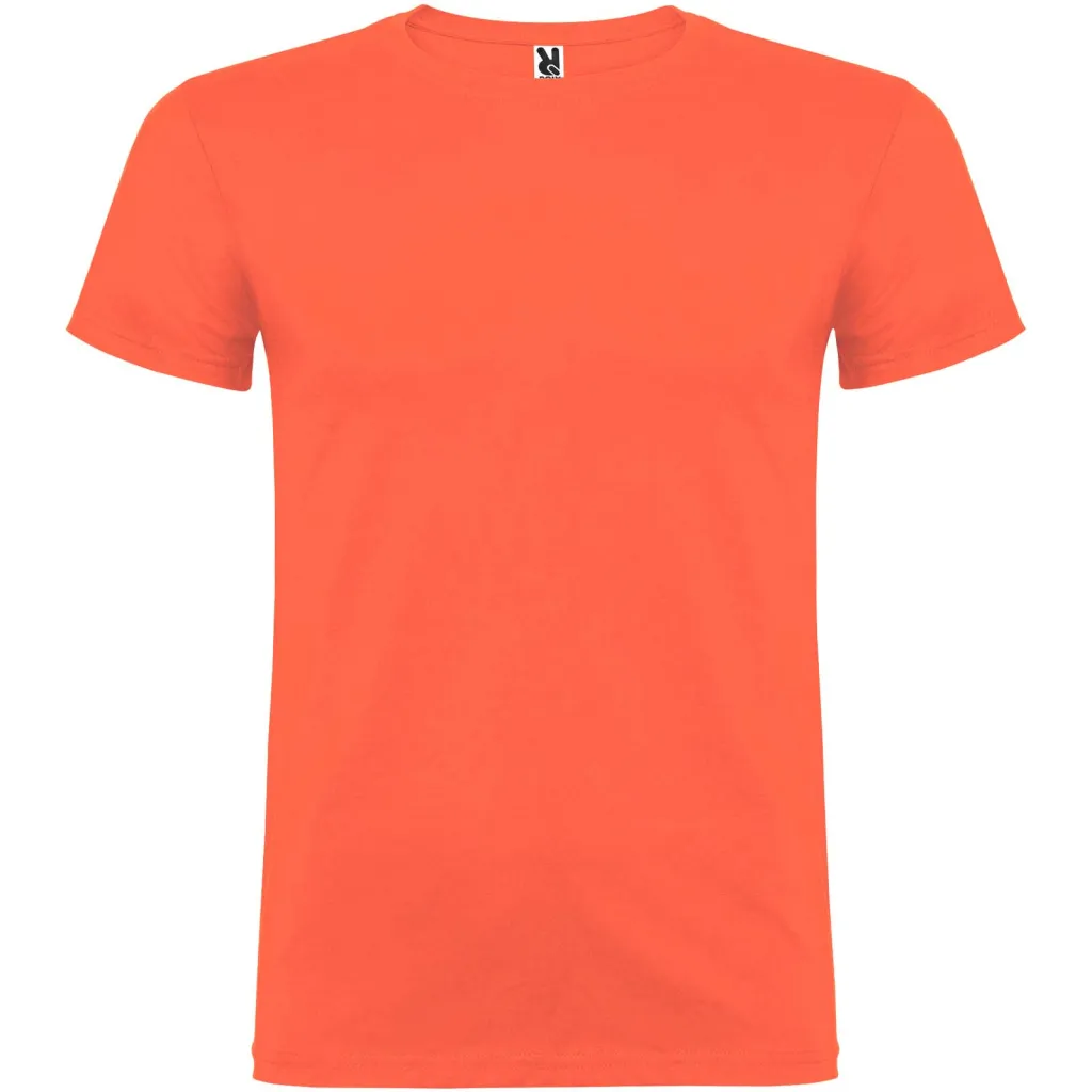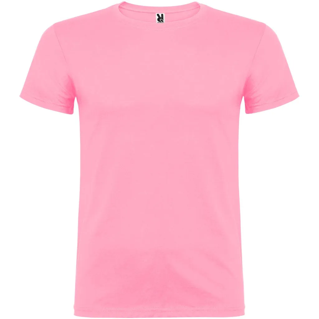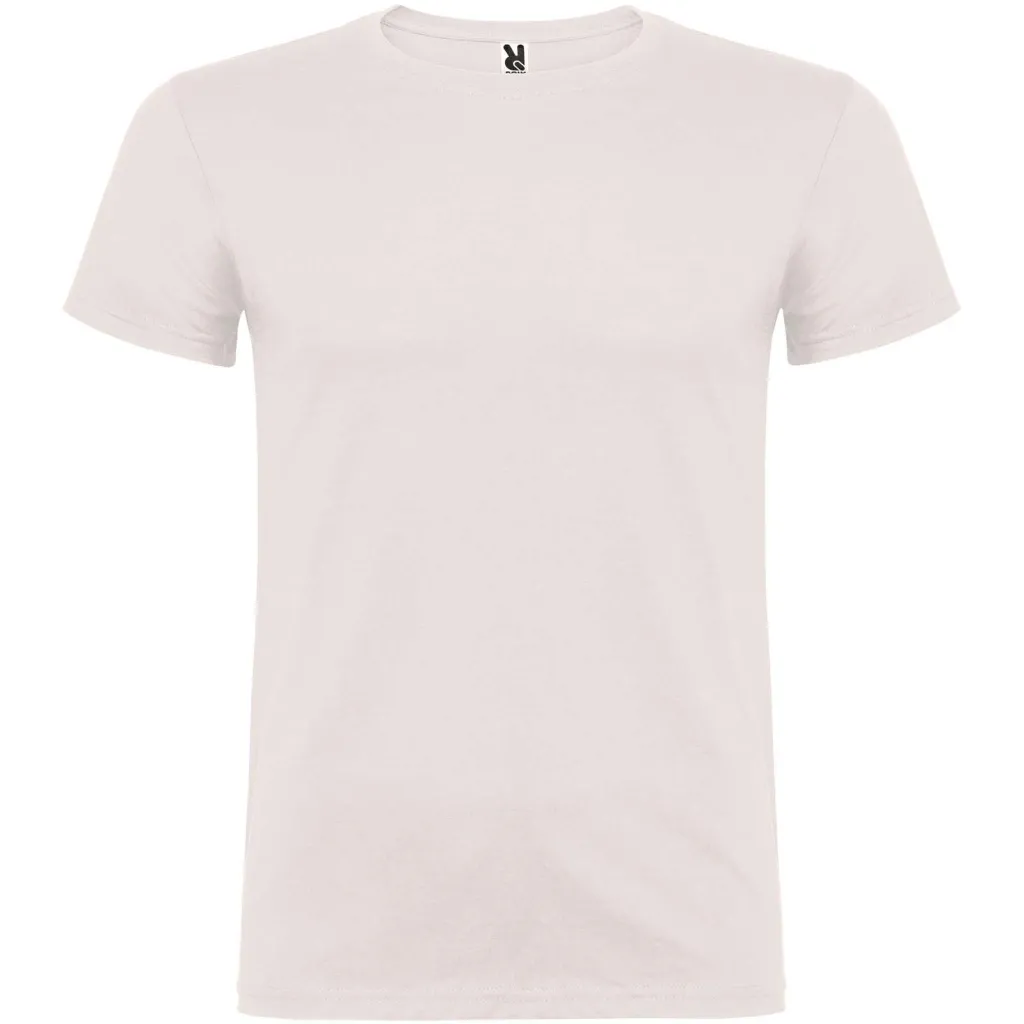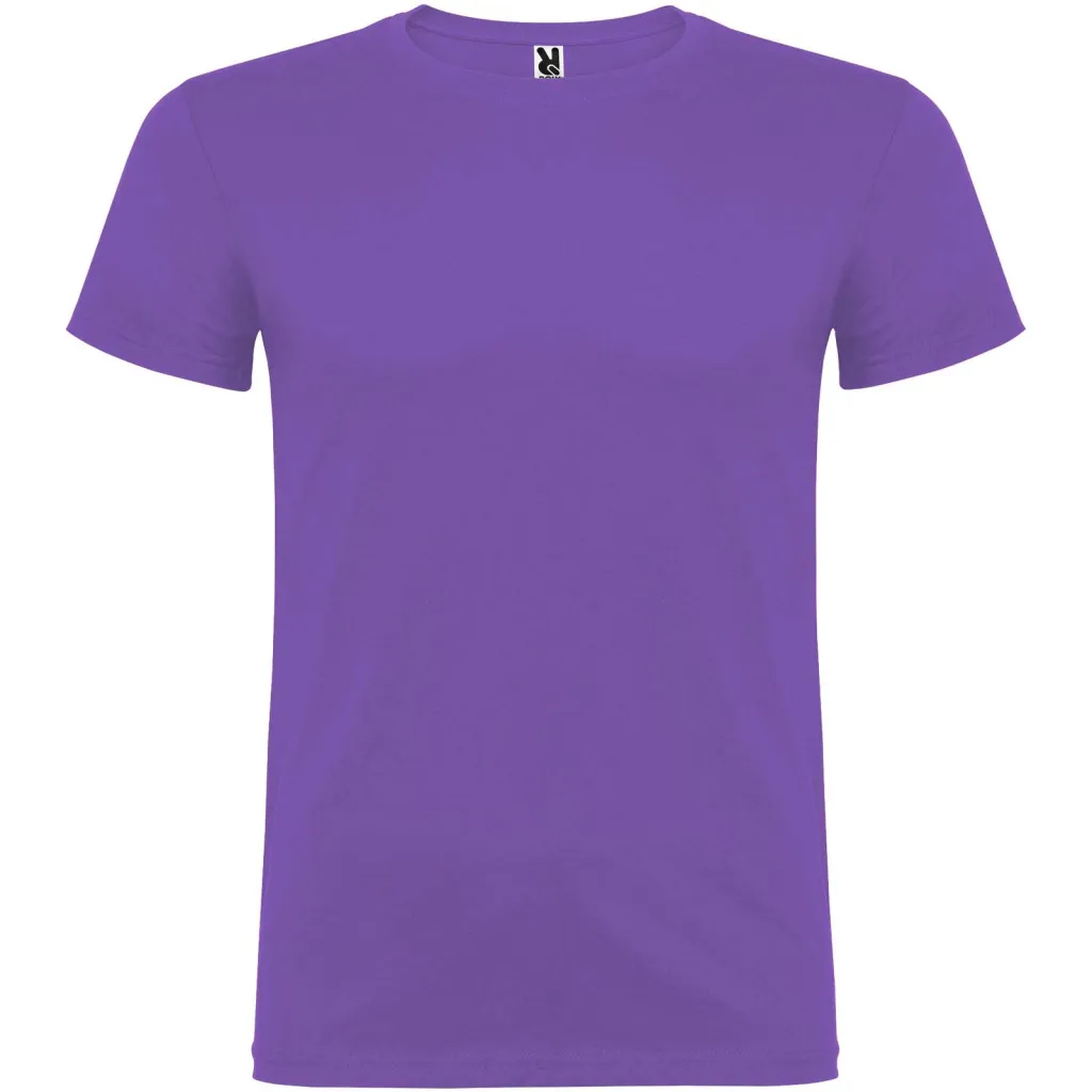 Short-sleeve t-shirt with double layer crew neck in elastane, made in tubular fabric for adults. Reinforced covered seams in collar. Removable label. The model is 190 cm and is wearing size L.