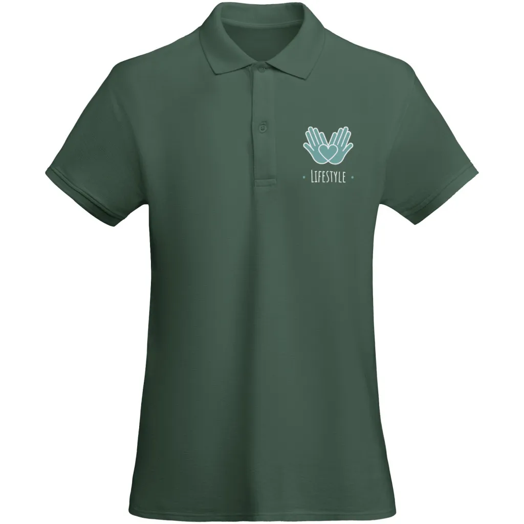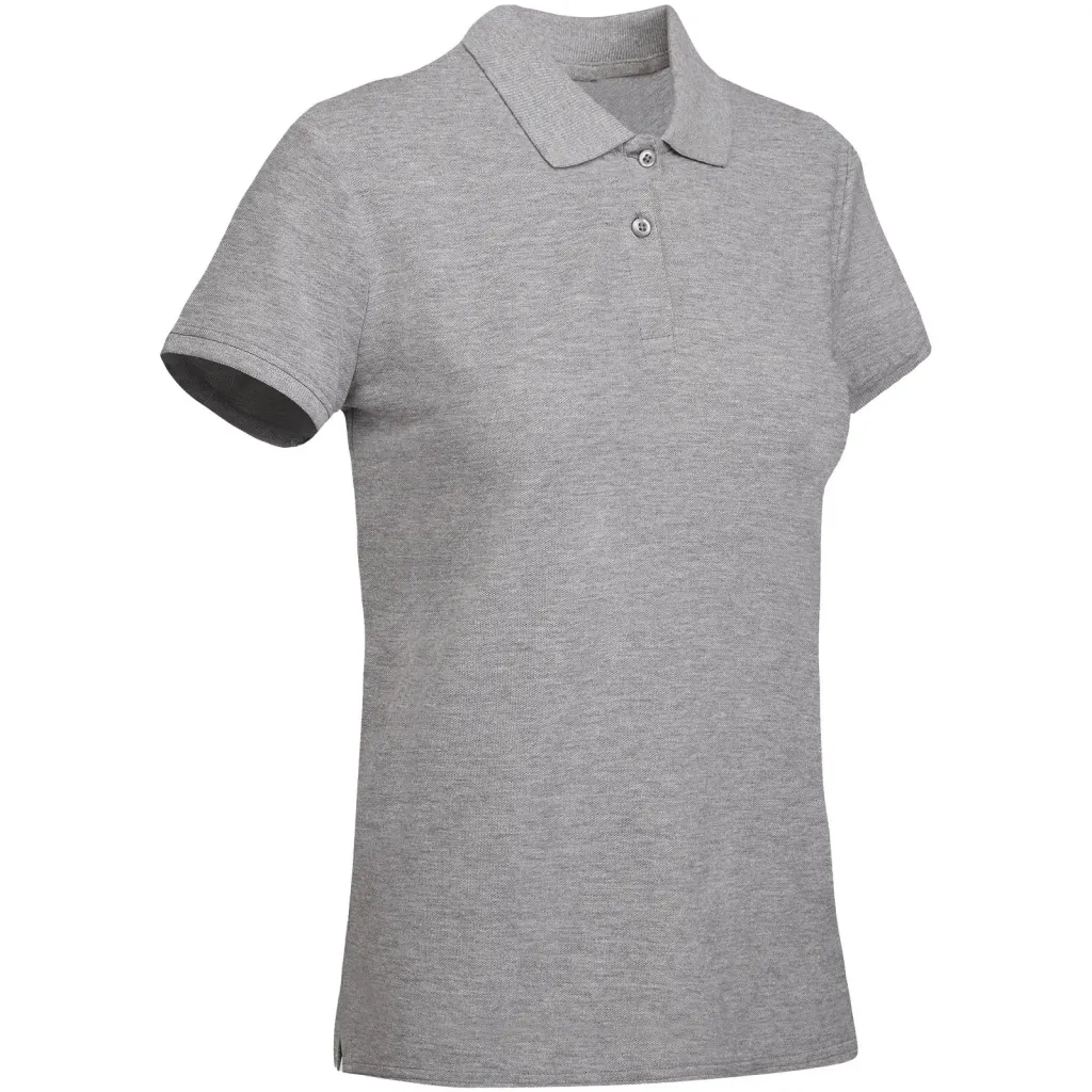 Fitted short-sleeve polo shirt for women in OCS certified organic cotton. 1x1 ribbed collar and sleeve edging. 2-button placket. Reinforced covered seams in collar. Side slits on hem. Removable label. OCS organic fabric. The model is 174 cm and is wearing size S.