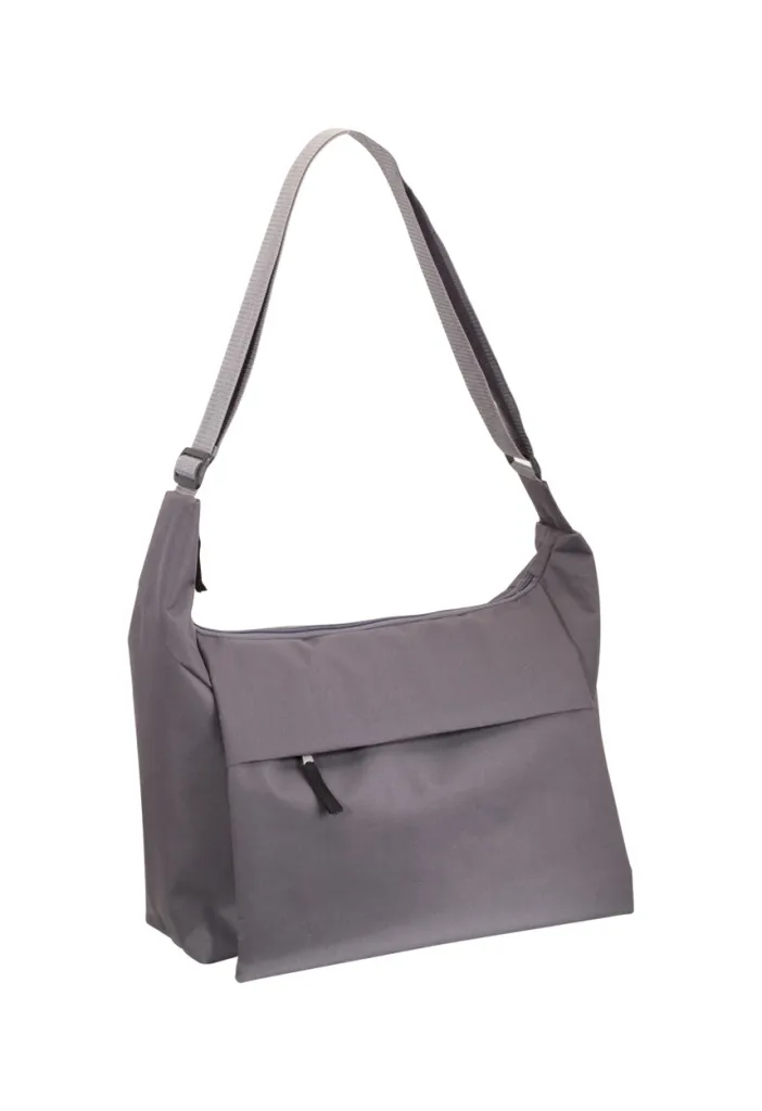 600D polyester shoulder bag with zipped pocket and adjustable strap.